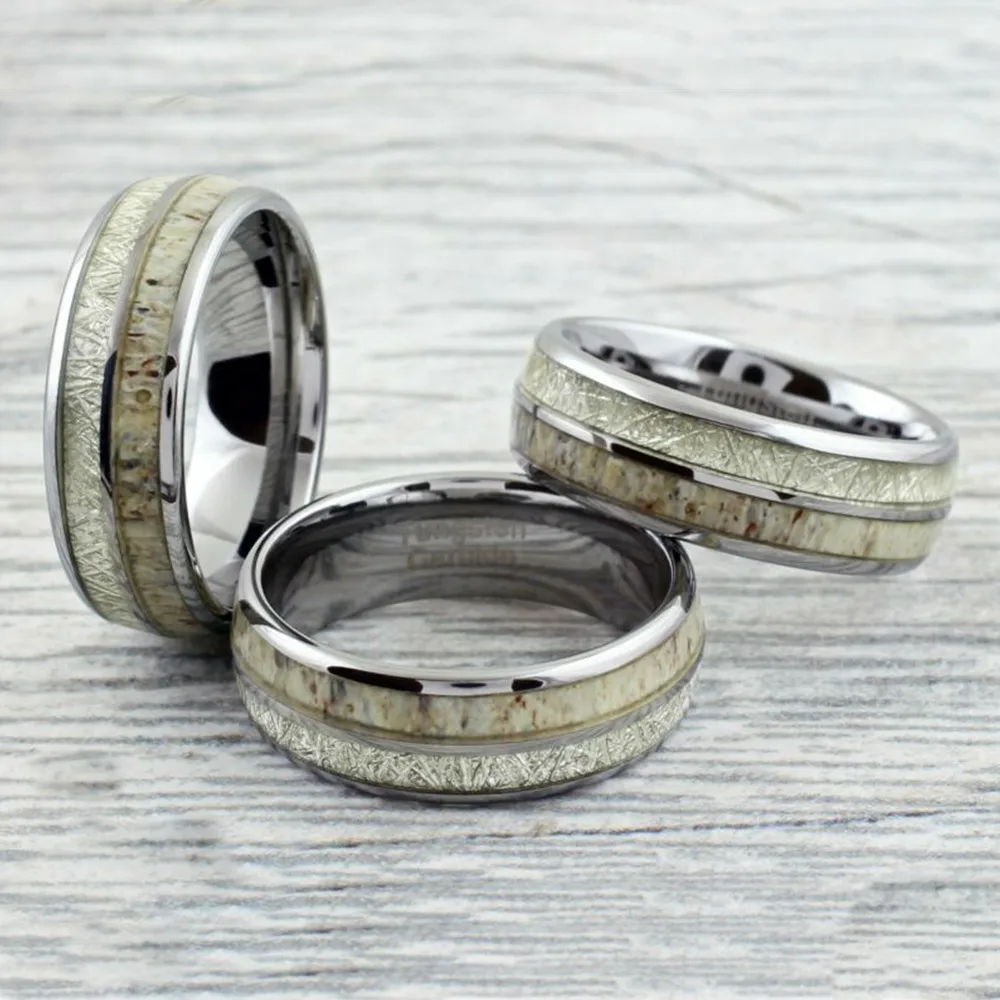 Мужское модное серебряное кольцо из вольфрамовой стали с деревянным покрытием и белым метеоритом, мужское обручальное свадебное кольцо, украшения для коктейля, вечеринки