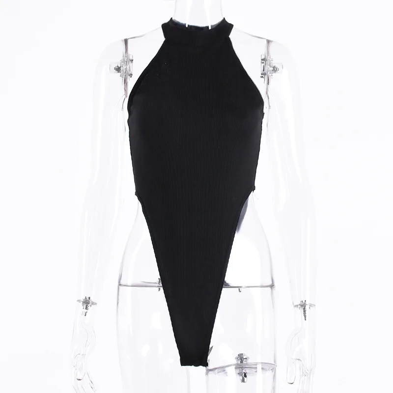 Модный сексуальный боди с лямкой на шее, Женский однотонный эластич...