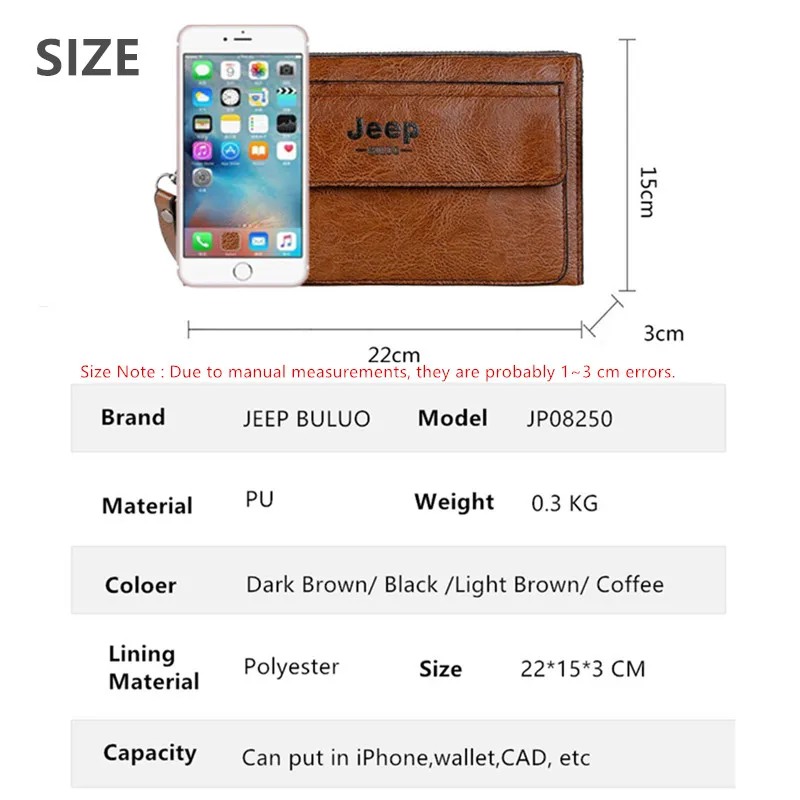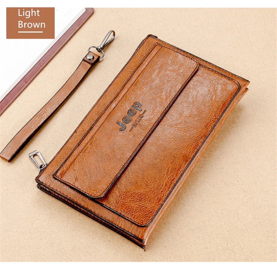 Мужской Длинный кошелек JEEP BULUO, коричневый брендовый бумажник на молнии с кармашком для монет, Обложка для паспорта, 2019