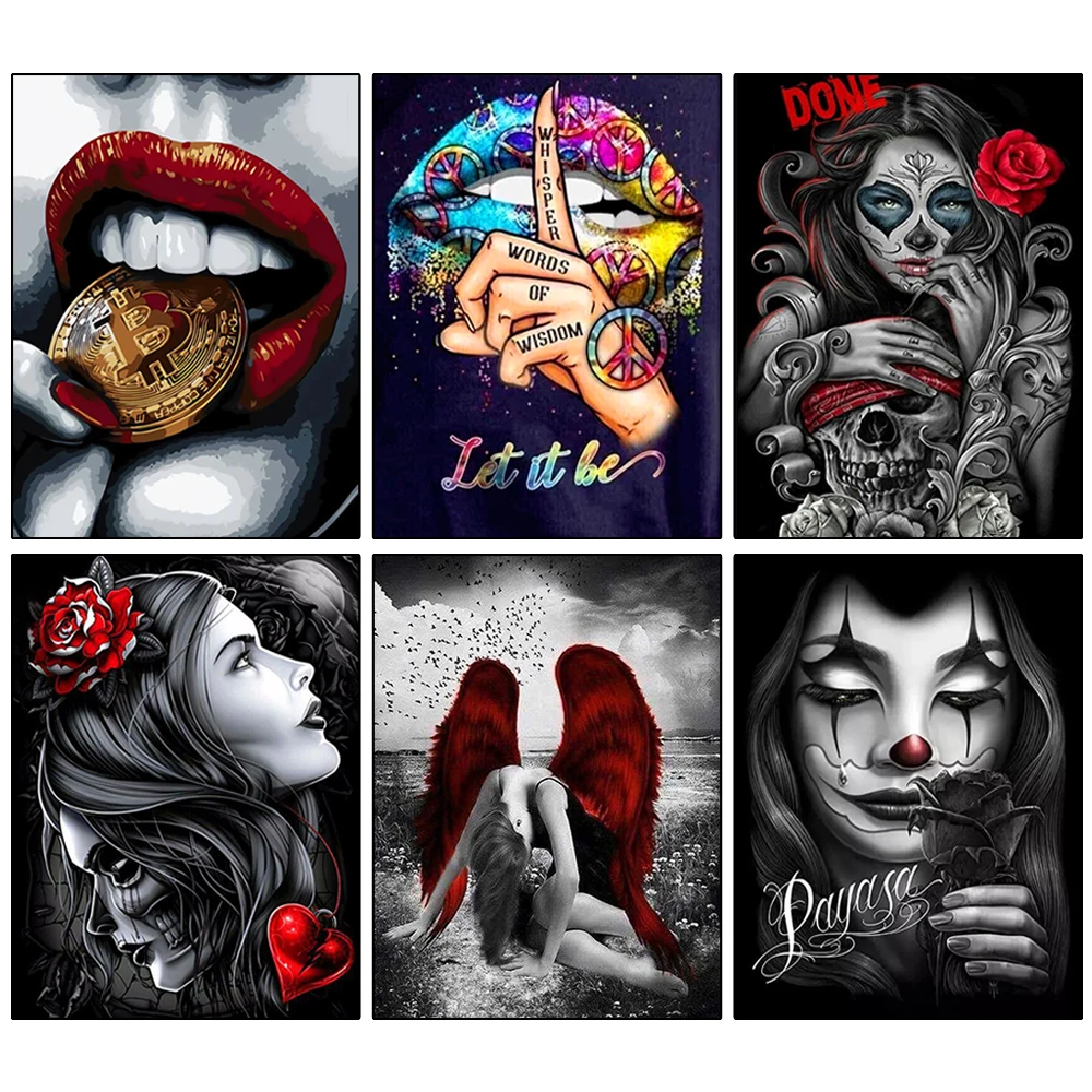 Алмазная живопись, черная красная женщина, алмазная вышивка, распро...