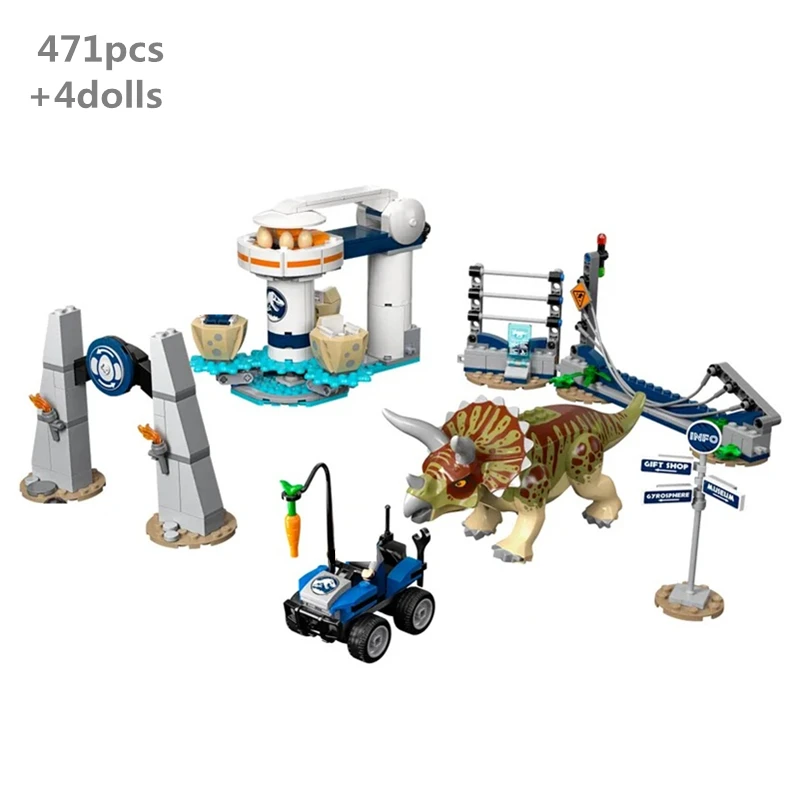 Новинка, набор строительных блоков Triceratops Rampage с животными, кирпичи, Парк Юрского периода, парк, парк, Классическая модель фильма, детские игрушки, подарки