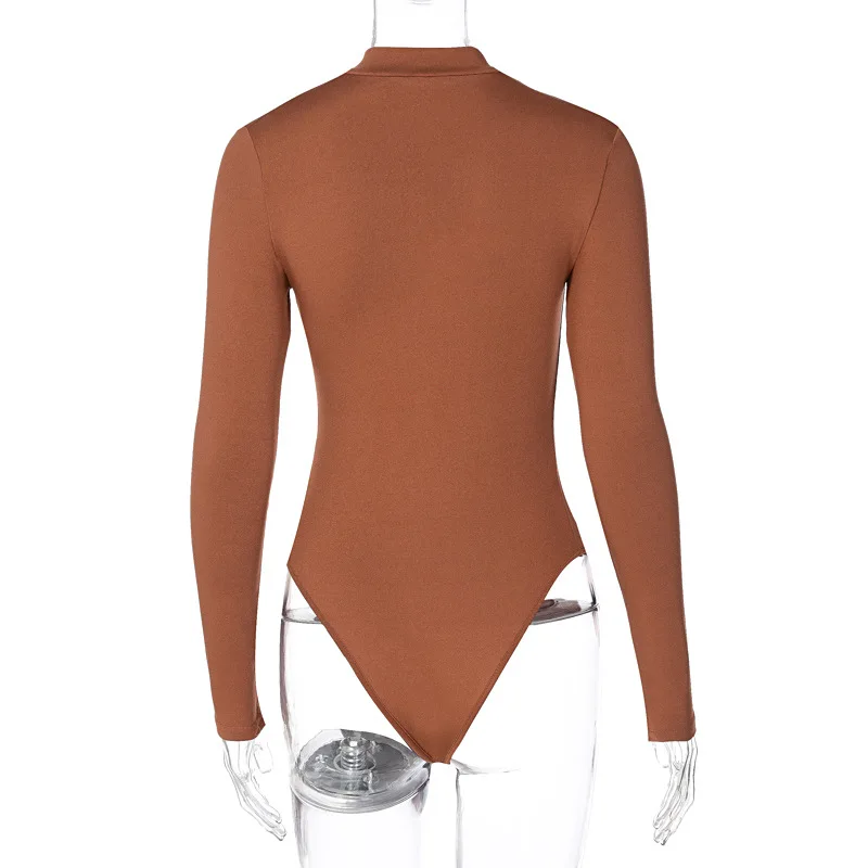 Женское боди на молнии с длинным рукавом и высоким воротником