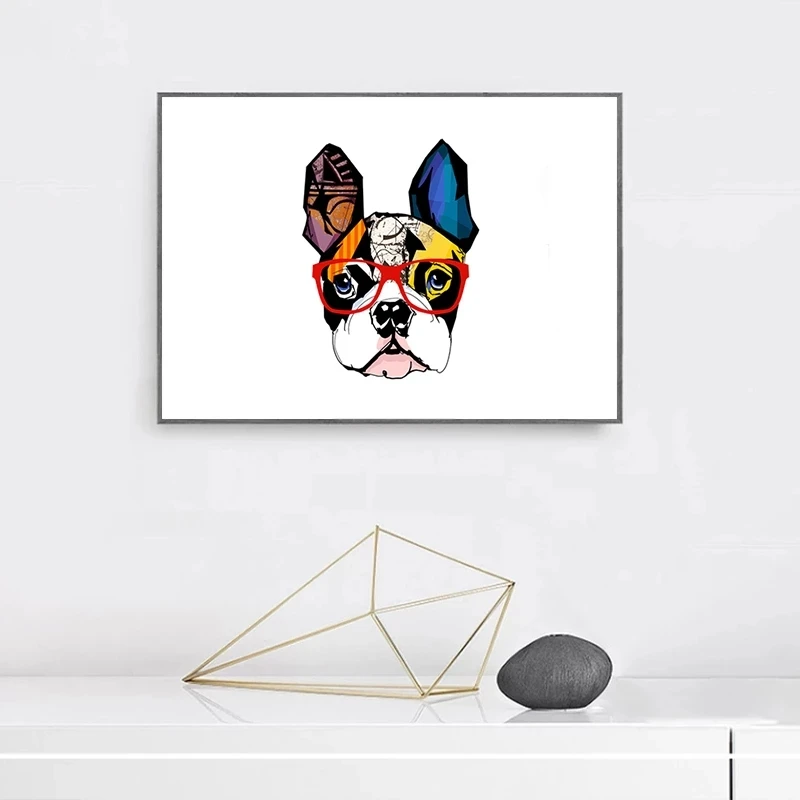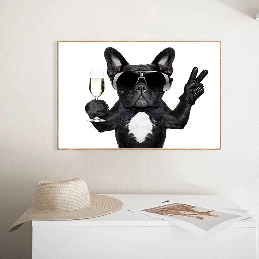 Настенная Картина на холсте с животными постер современный бульдог питьевой с солнцезащитными очками украшение для дома картины для помещения