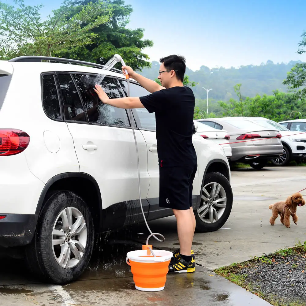 1. Широкое применение: С помощью этого аккумулятора мобильного душа для кемпинга с батарейным насосом вы можете принимать душ в любом месте, например, Чистка автомобиля, мытье собак, кемпинг, туризм, серфинг или другие виды деятельности. Ваш душ всегда будет с вами.