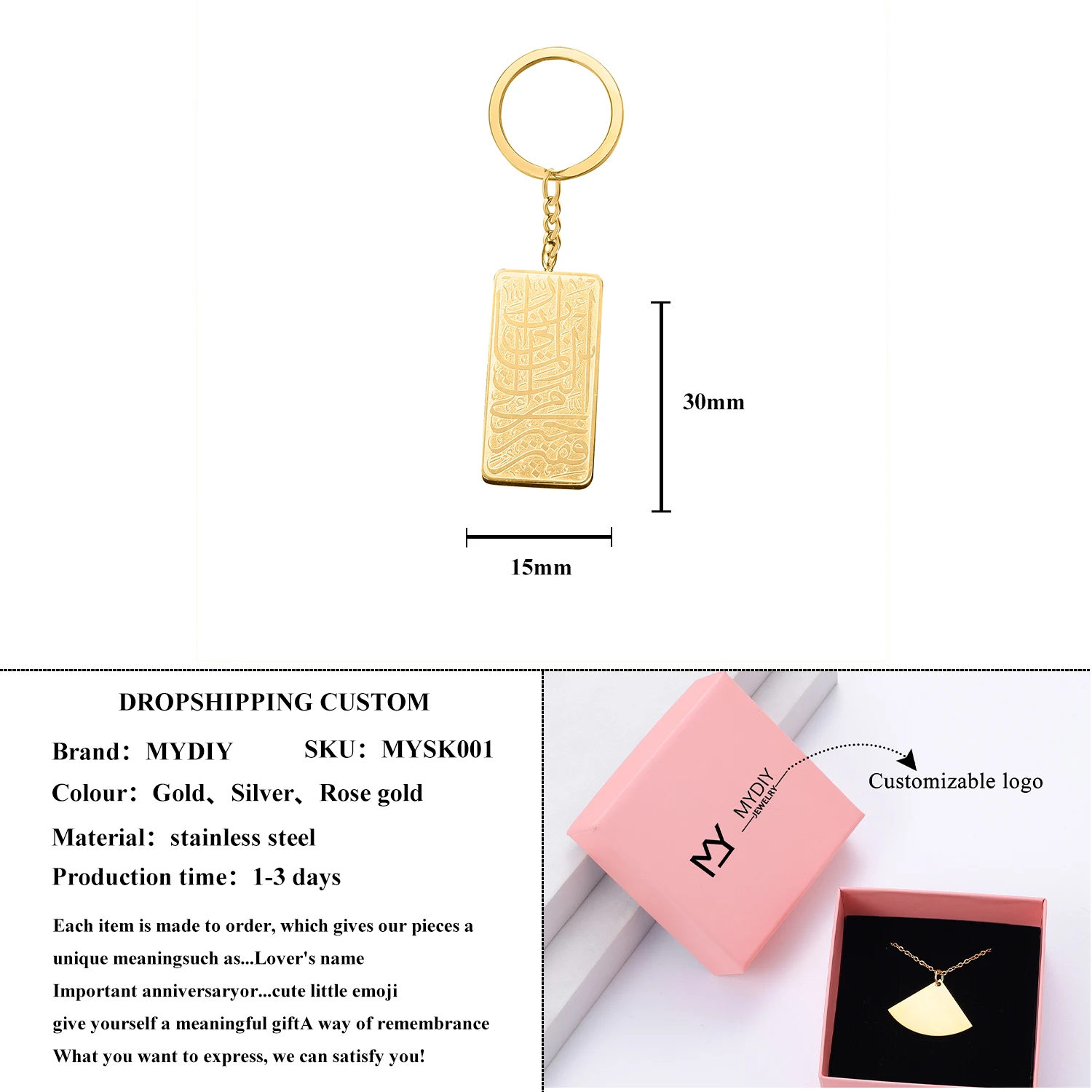 Брелок AYATUL КУРСИ, мужские, из нержавеющей стали, мусульманские украшения, позолоченные, арабские украшения, брелок для женщин и мужчин, подарок