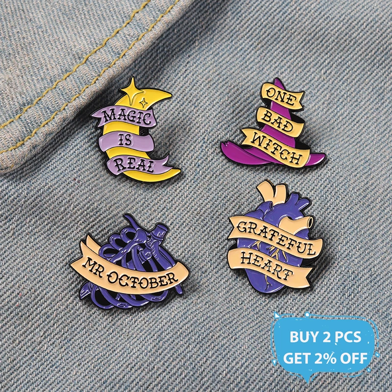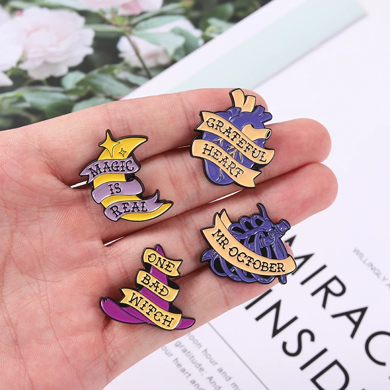 Эмалированные булавки в виде ведьмы на Хэллоуин, настоящая луна, сердце, скелет, панк, индивидуальные броши, значок, подарок для друзей