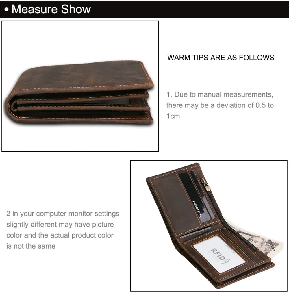 Мужской кошелек, кожаный кошелек Crazy Horse, Короткий Повседневный...