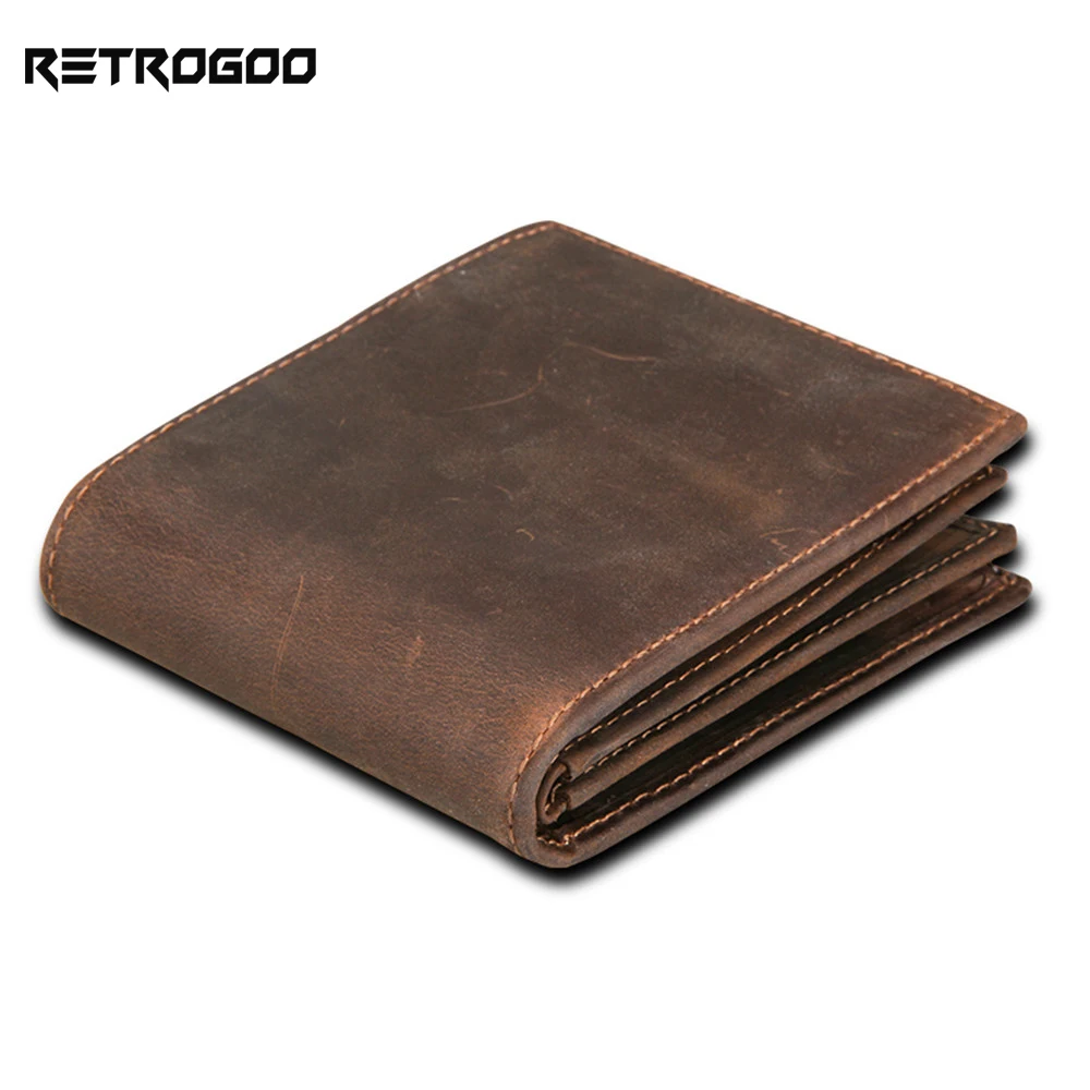 Кошелек RETROGOO мужской из натуральной кожи, короткий бумажник из воловьей кожи с блокировкой радиочастотной идентификации, кредитница с кармашком для мелочи
