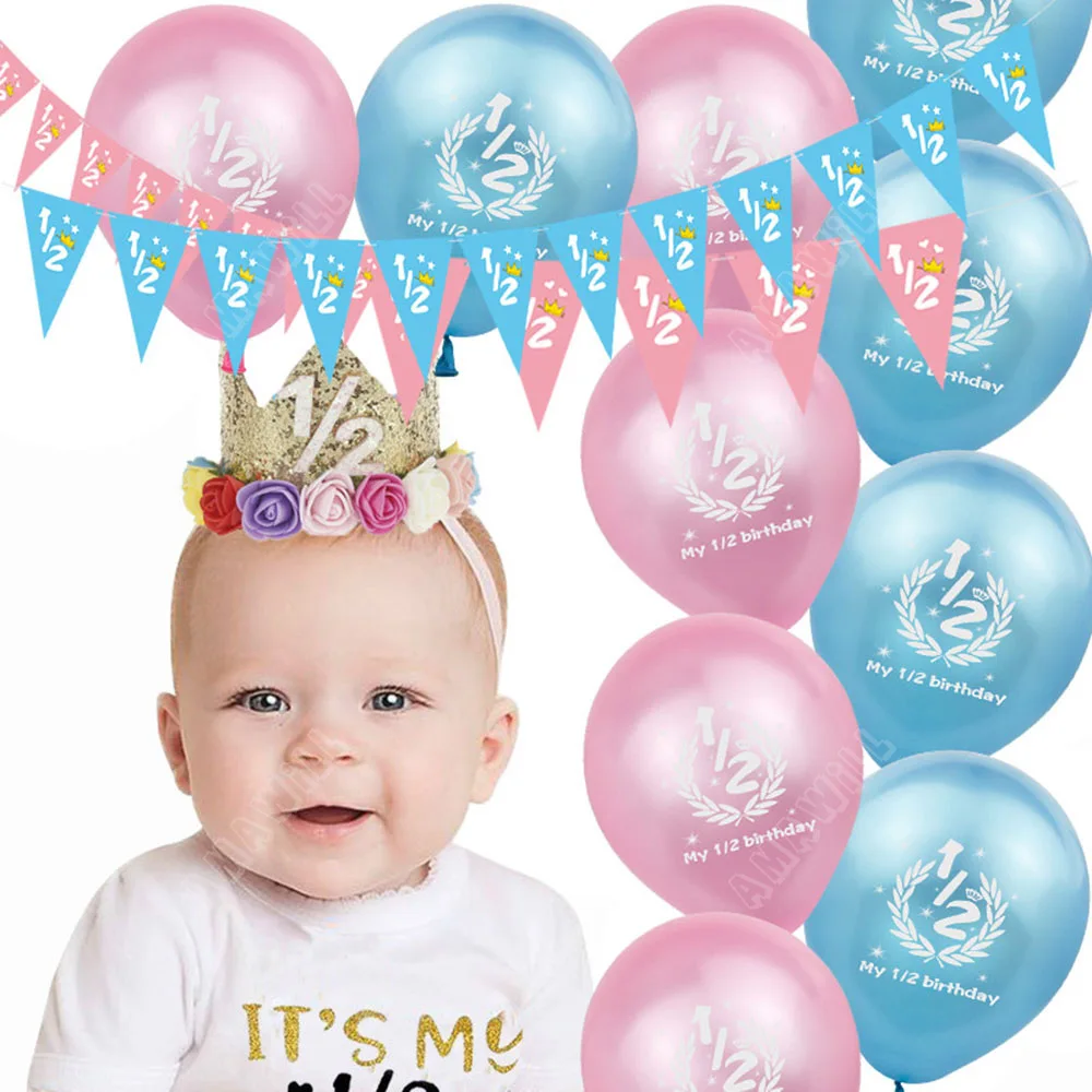 Amawill мой 12 день рождения розовые синие латексные воздушные шары детский душ это мой половинный День Рождения украшения мальчик и девочка 6 месяцев день рождения