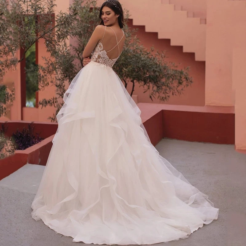 Элегантное кружевное платье-трапеция ChuYu 2021 с V-образным вырезом, без рукавов, с открытой спиной, из Мягкого Тюля, свадебное платье принцессы, Новое поступление