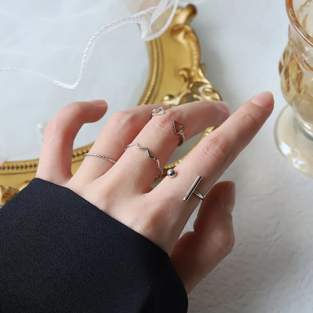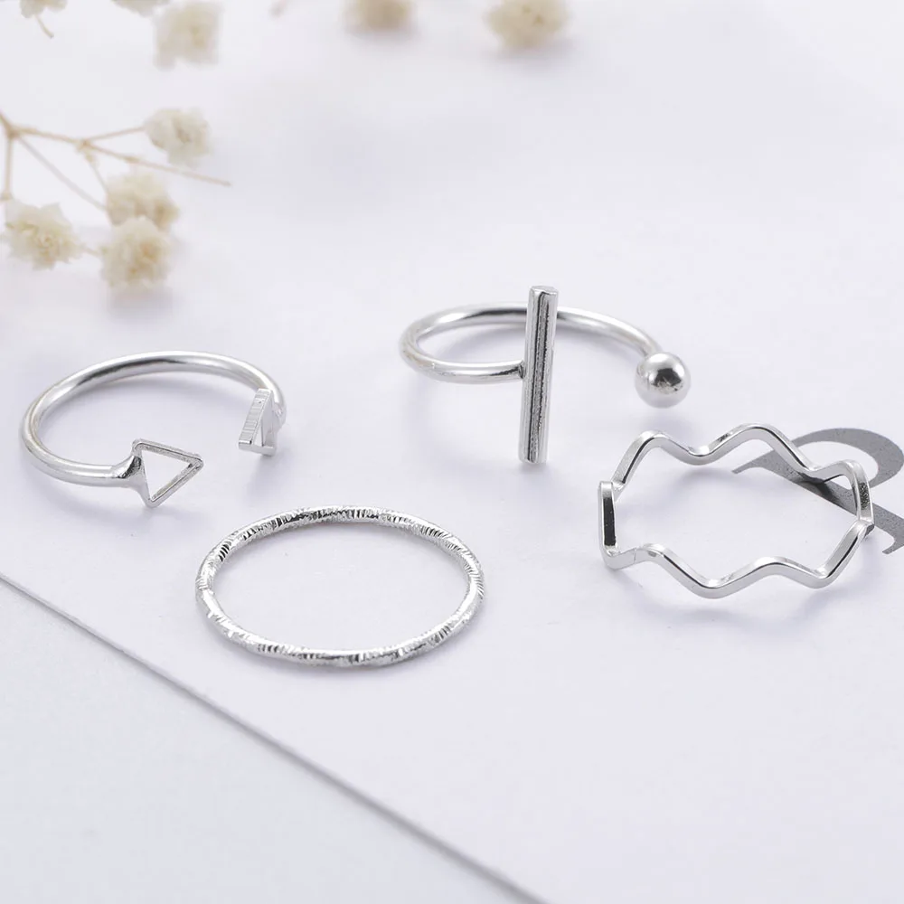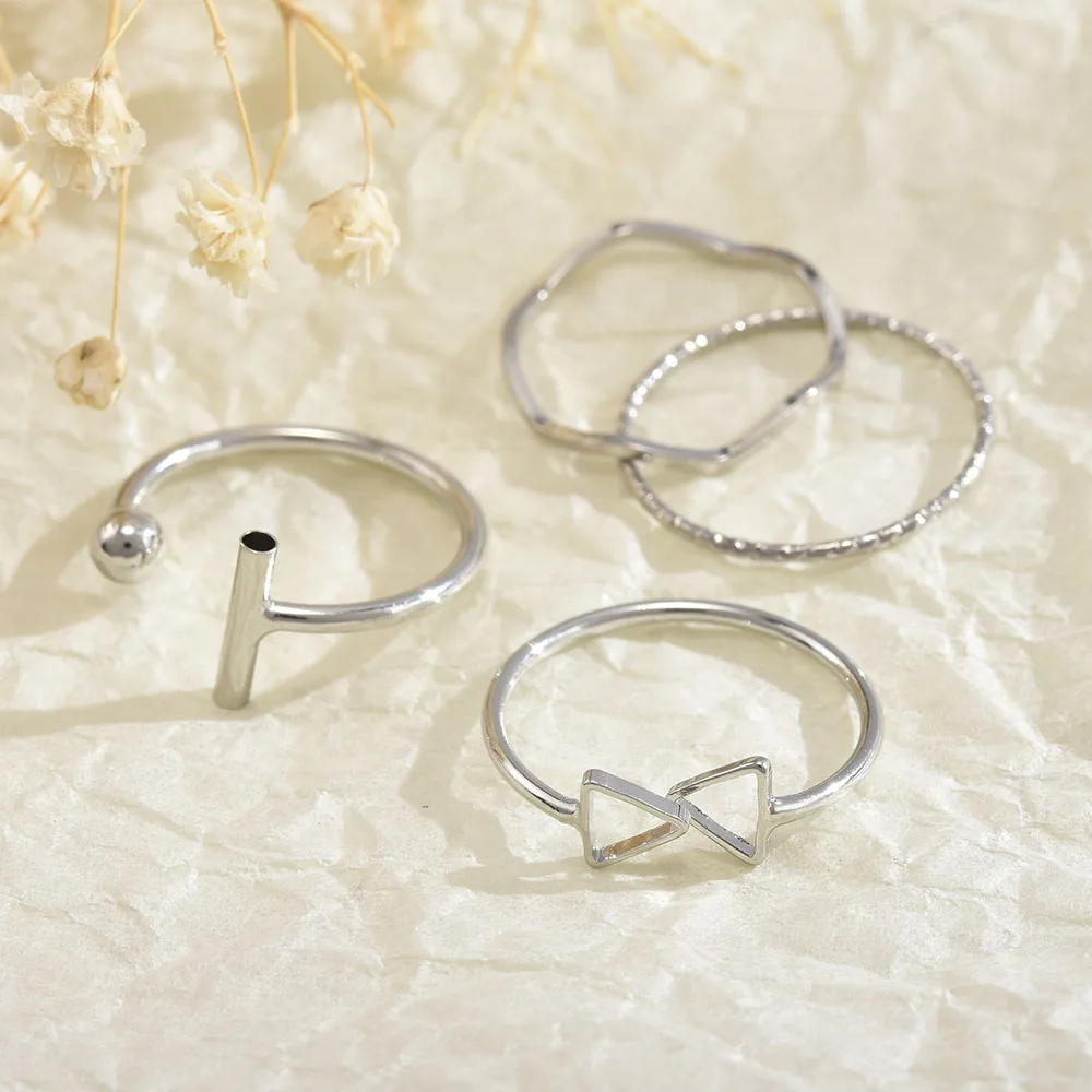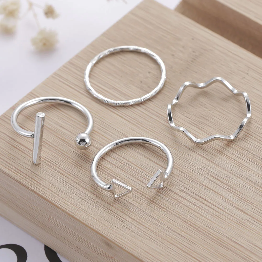 Кольцо в стиле панк для мужчин и женщин, простые модные открытые кольца с геометрическим дизайном треугольника, из четырех частей, ювелирные изделия, 4 шт.