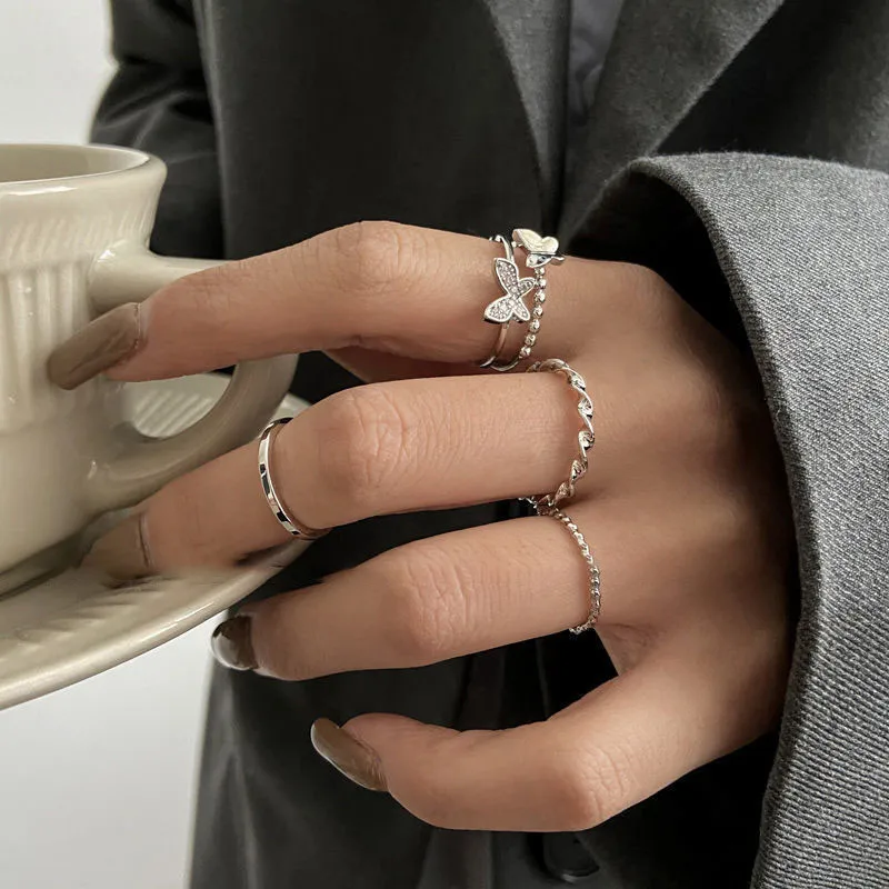 7 колец, суперфея, Бабочка, витое кольцо из четырех частей для женщ...