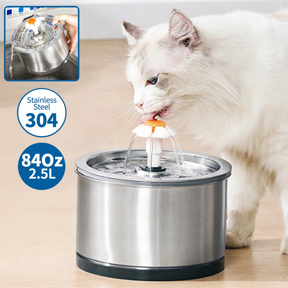 Поилка для домашних животных, 4-ступенчатый питьевой фонтан из нержавеющей стали с фильтром, емкость 2,5 л, 3 потока, бесшумный водяной насос