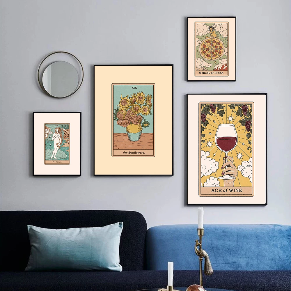 Танцевальная Картина на холсте, настенная живопись, звезда, таро, луна, солнце, императрица, Ретро стиль, скандинавские постеры и принты для декора гостиной