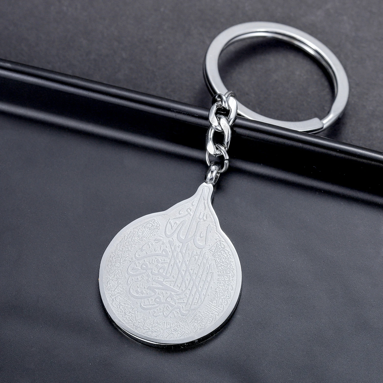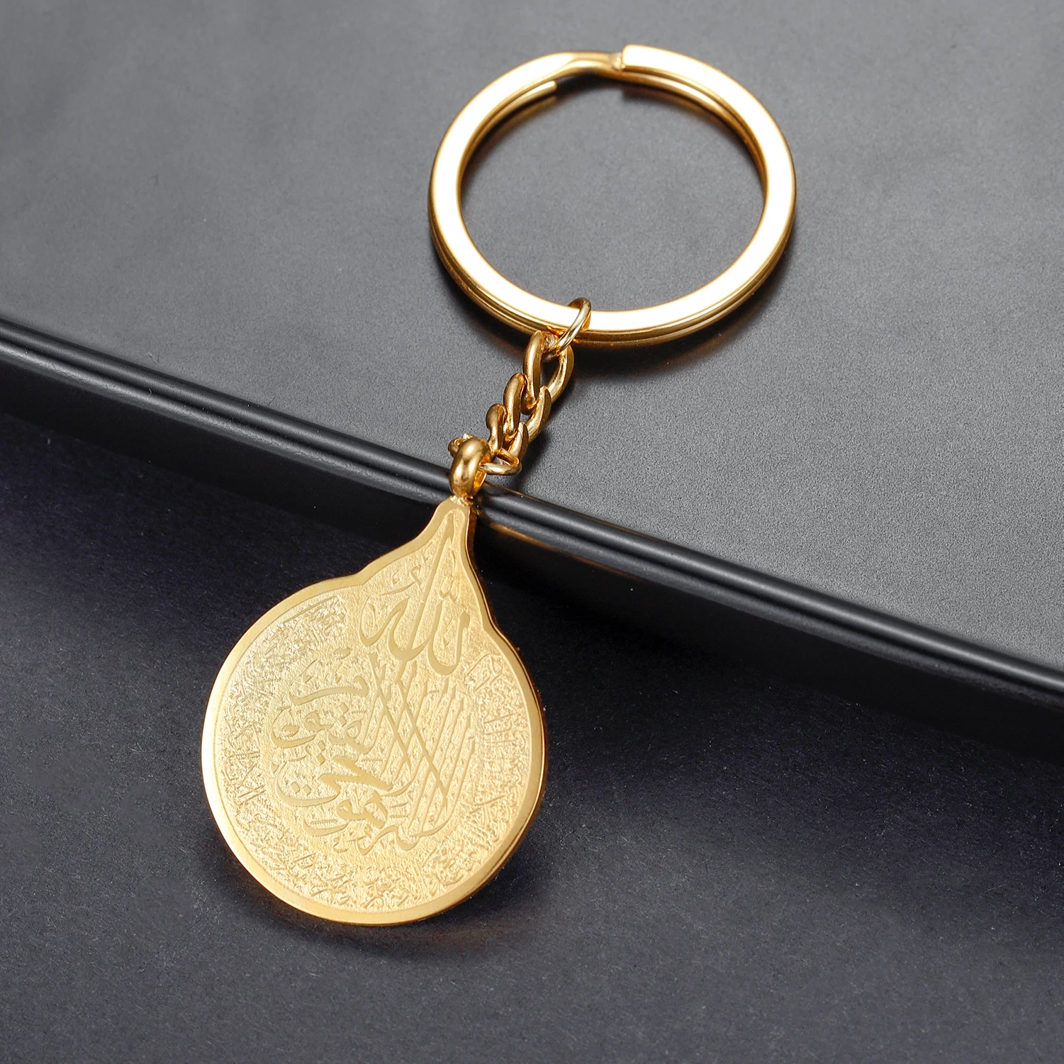 AYATUL KURSI брелок Мужские мусульманские ювелирные изделия из нержавеющей стали 18k позолоченные арабские ювелирные изделия брелок капля для ключей для женщин и мужчин Eid Gift