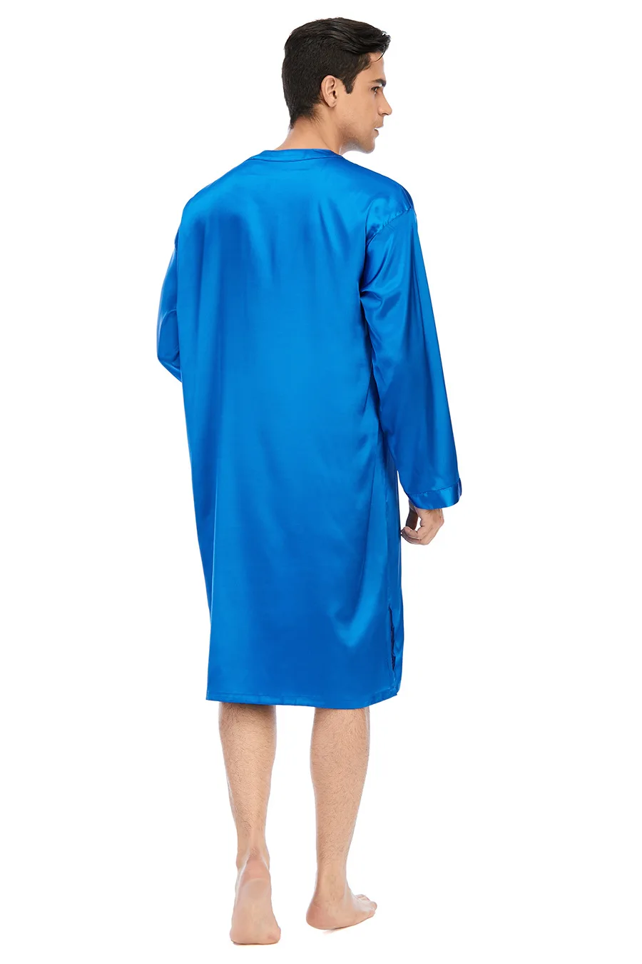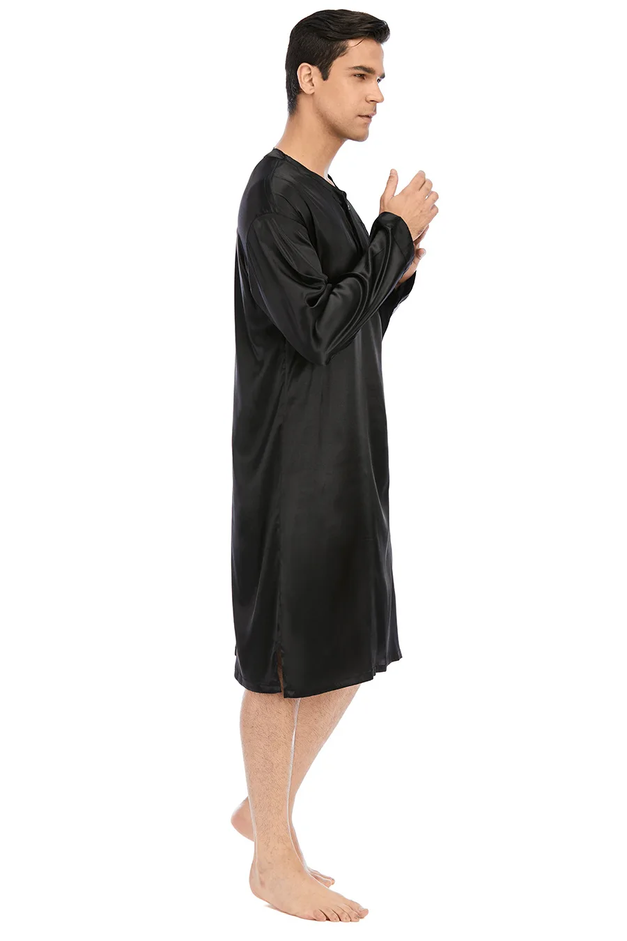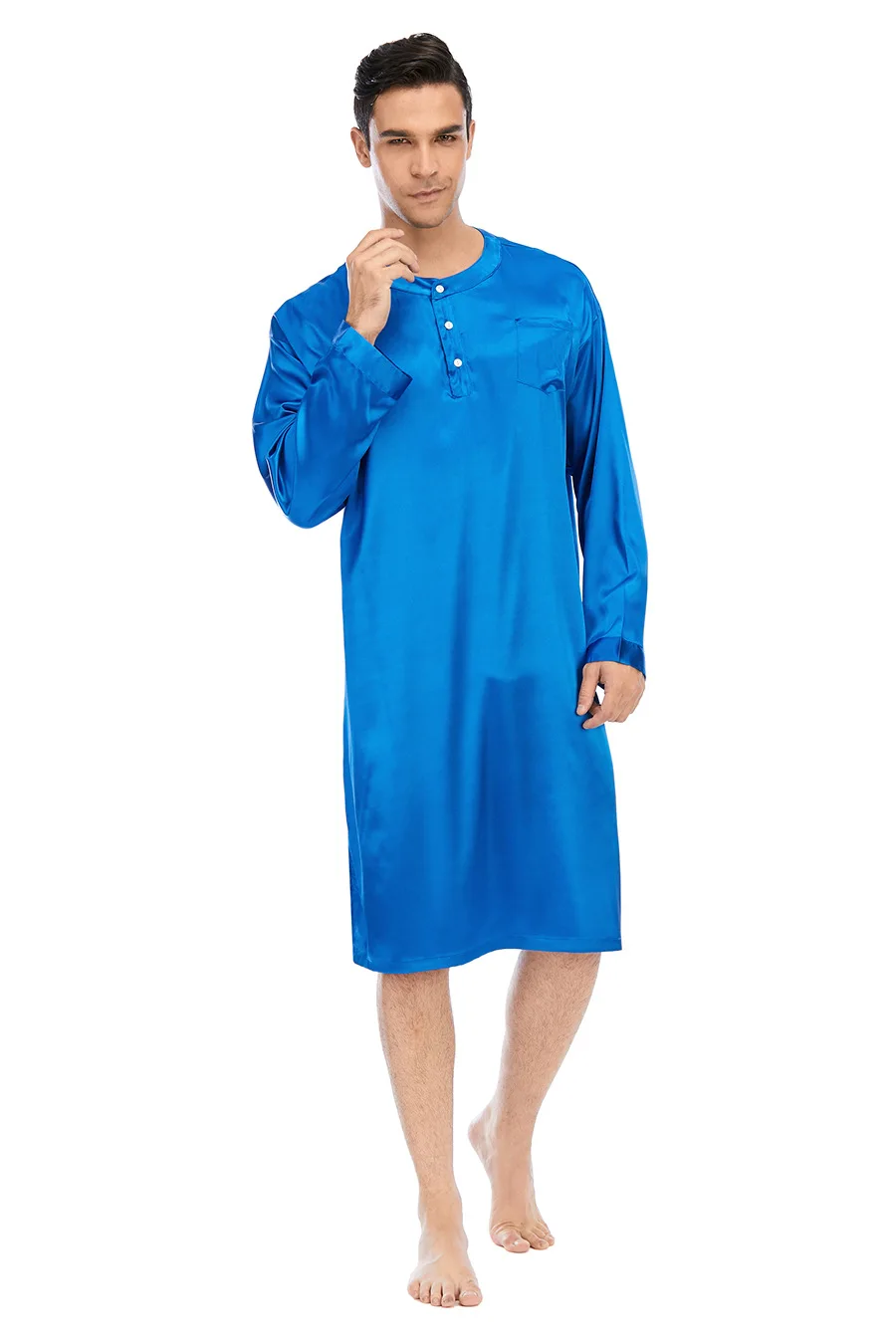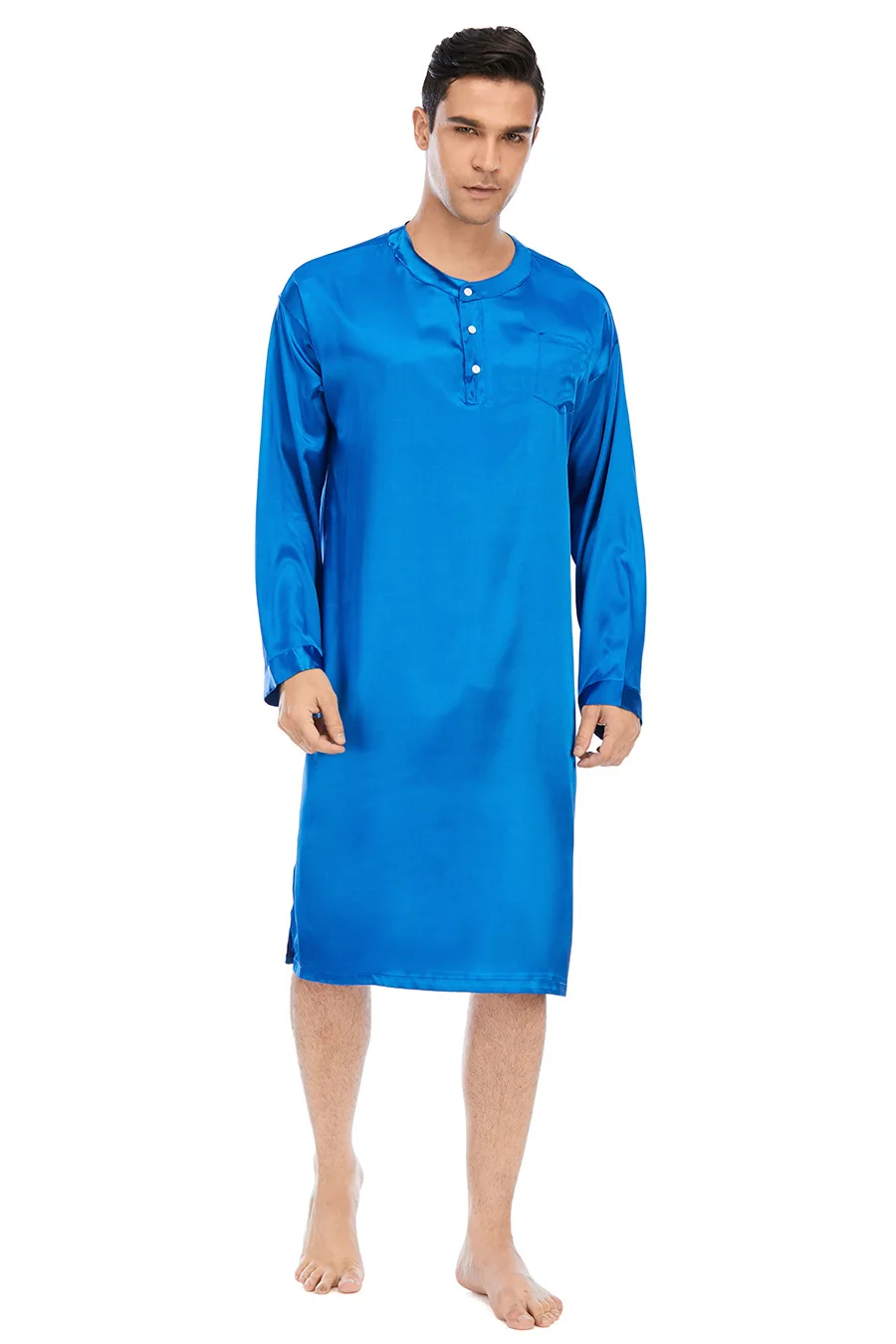 Ночная рубашка мужская с длинным рукавом, атласный пикантный халат, Однотонная ночная рубашка, свободный халат, вискоза, домашний сон, весна-осень