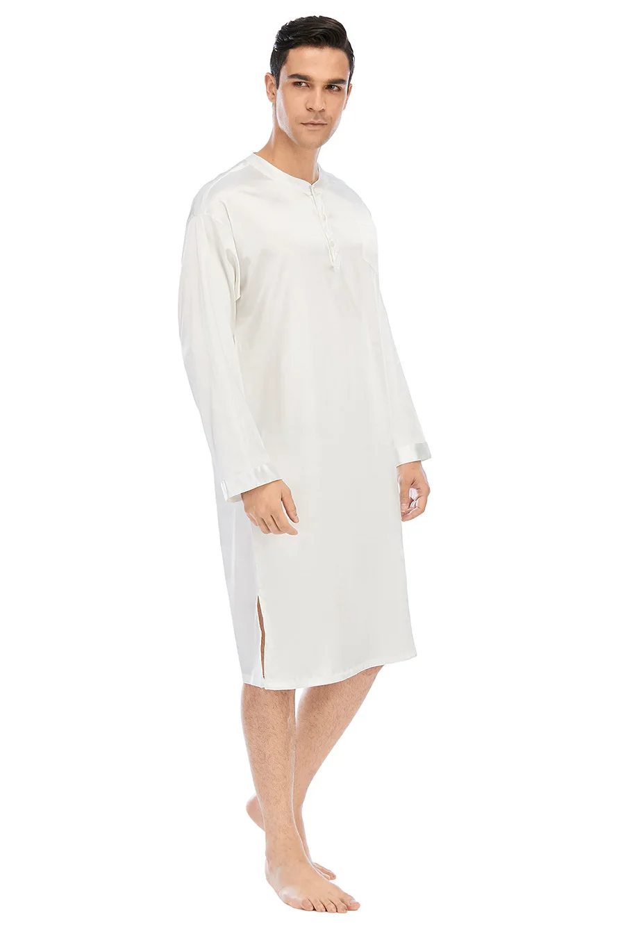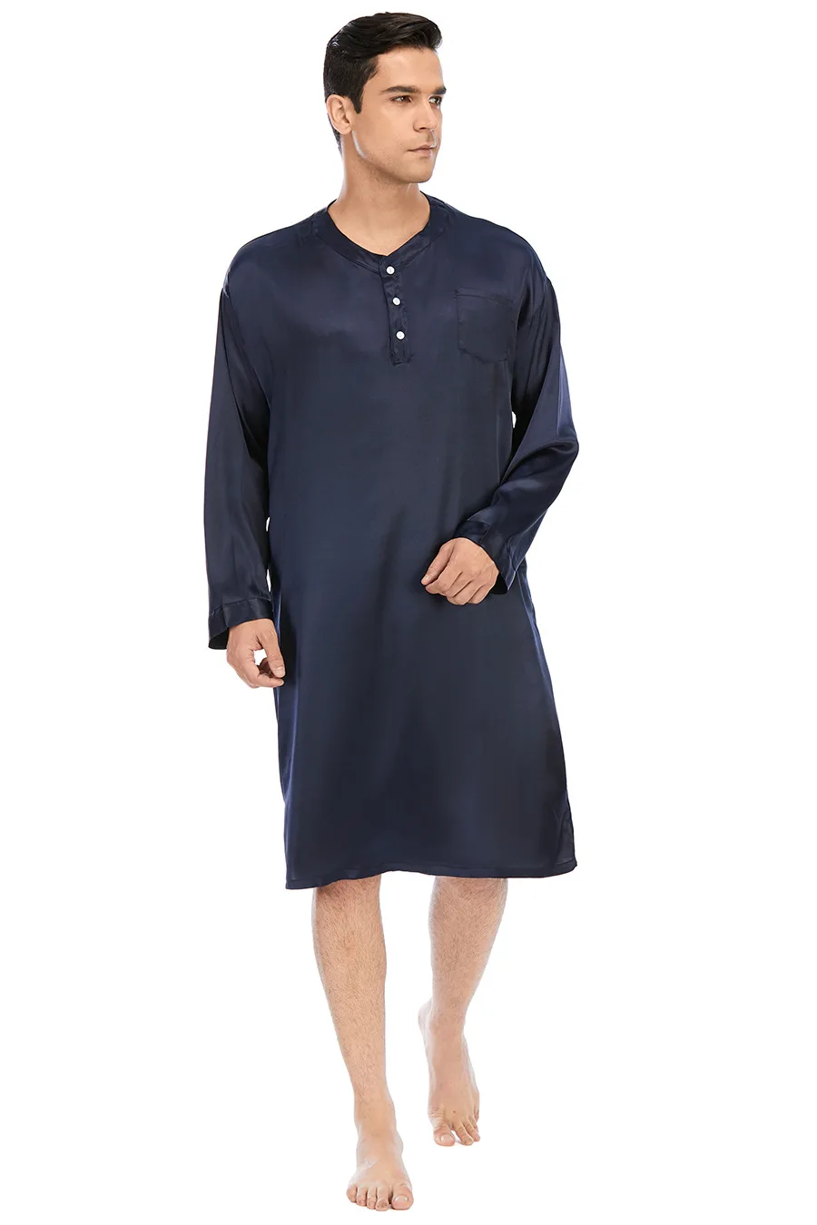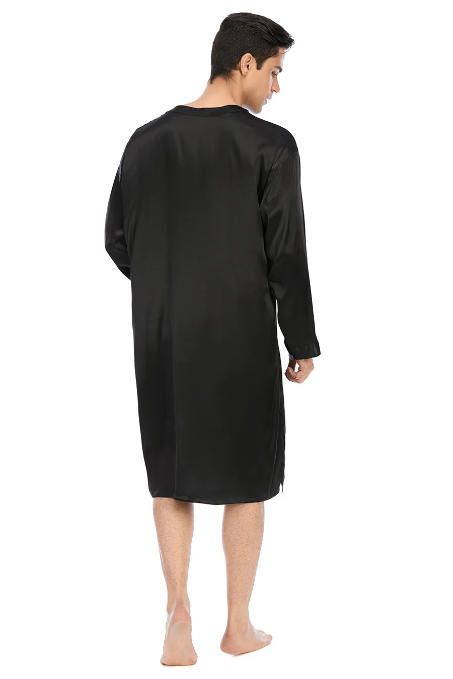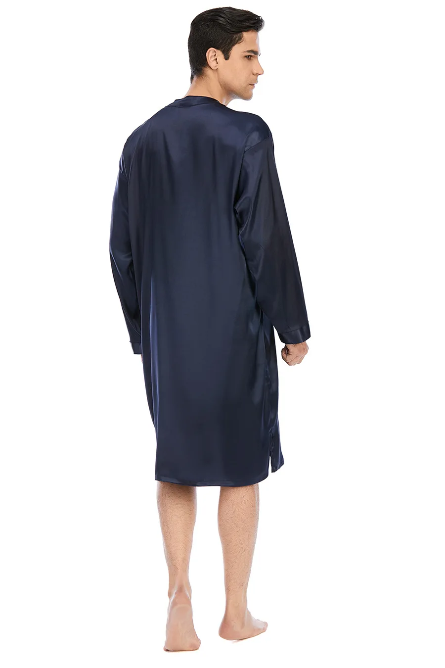 Ночная рубашка мужская с длинным рукавом, атласный пикантный халат, Однотонная ночная рубашка, свободный халат, вискоза, домашний сон, весна-осень
