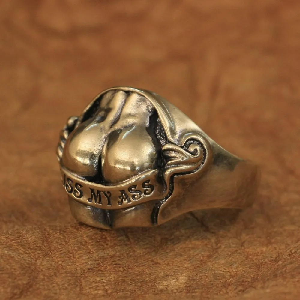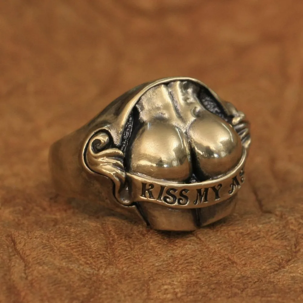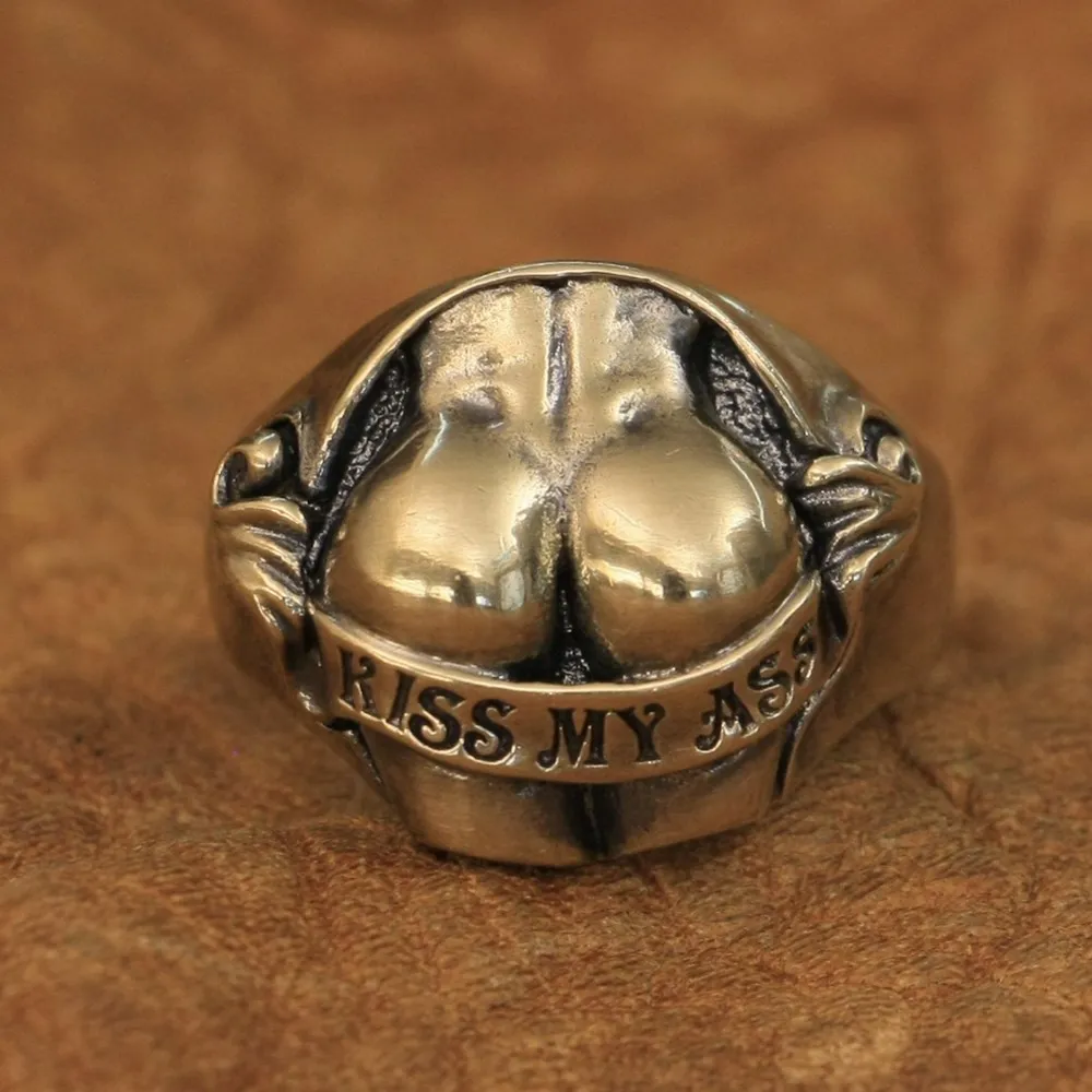 LINSION детали латунь сексуальные бедра кольцо в виде ягодиц Kiss My Ass мужское байкерское кольцо BR148 США Размер 7 15