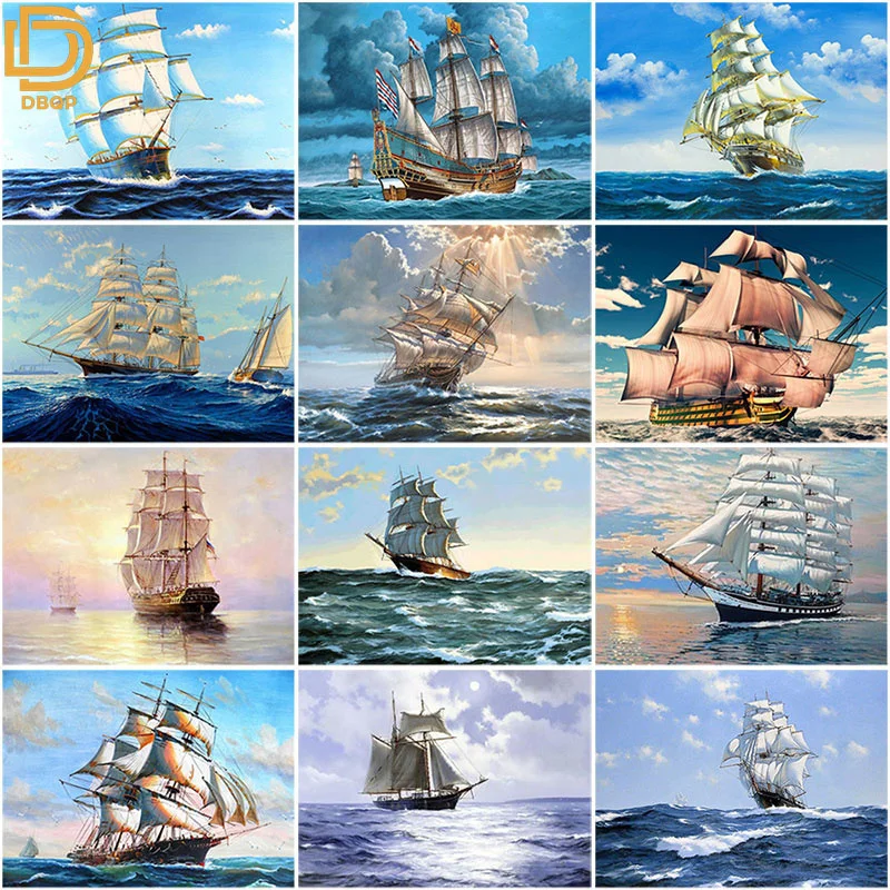 DIY 5D алмазная живопись парусная лодка Алмазная вышивка корабль вышивка крестиком Полный Круглый квадратный дрель мозаика ручной художественный подарок домашний декор
