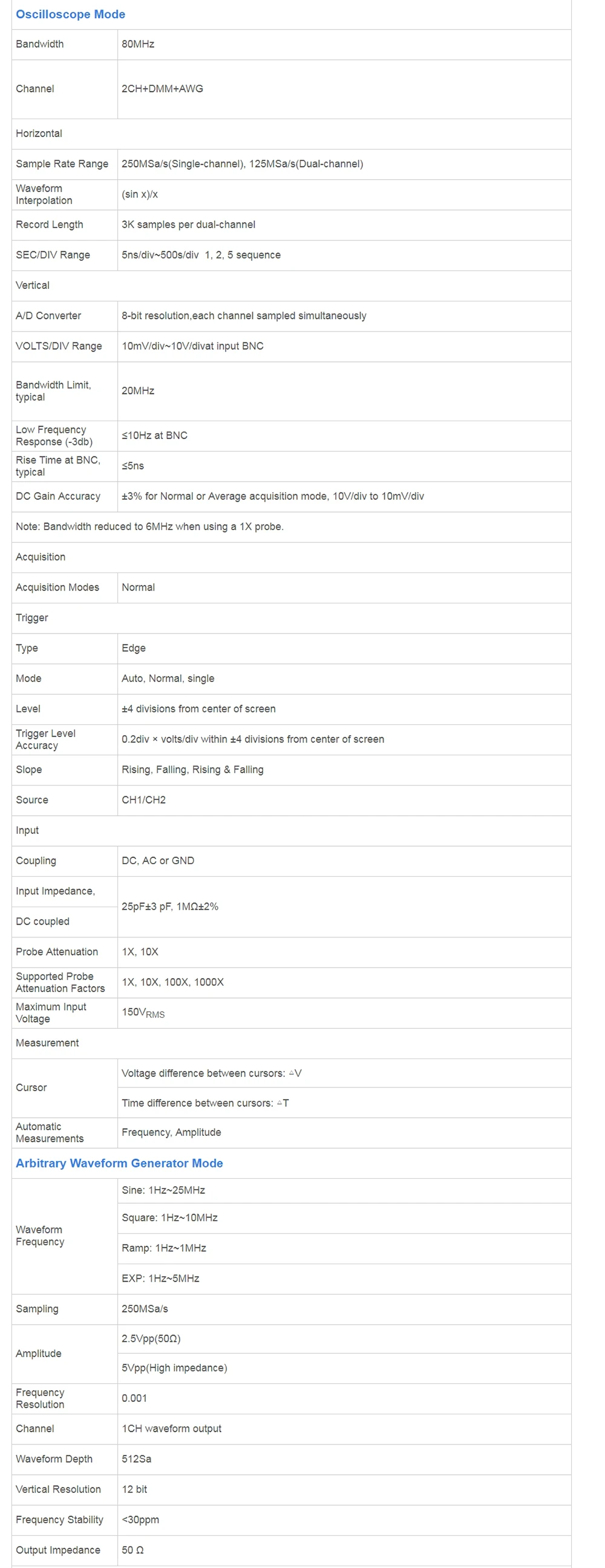 1 * Hantek 2D82Auto1 * посылка чехол1 кабель типа C1 * Адаптер питания1 * мультиметр зонд2 * HT324 провода1 * HT30B провода1 * HT25 зонд1 * HT307 набор зондов1 * HT308 КС1 * HT201 20:1 аттенюатор