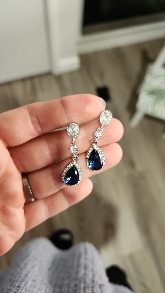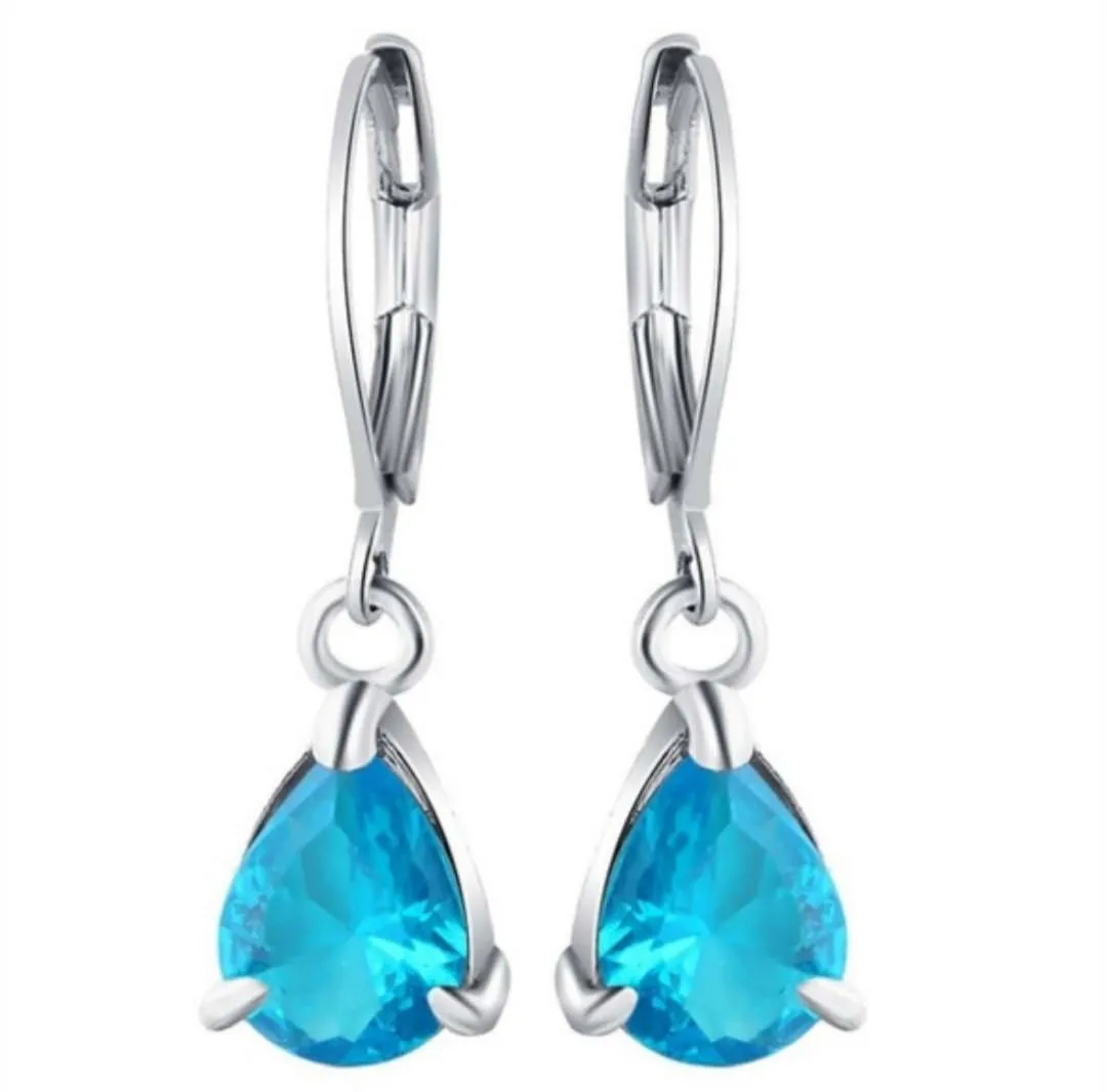 Ювелирные изделия, женские синие и белые стразы в форме капли воды, кристаллы, циркониевые металлические Висячие серьги для женщин, ювелирные изделия для вечеринок
