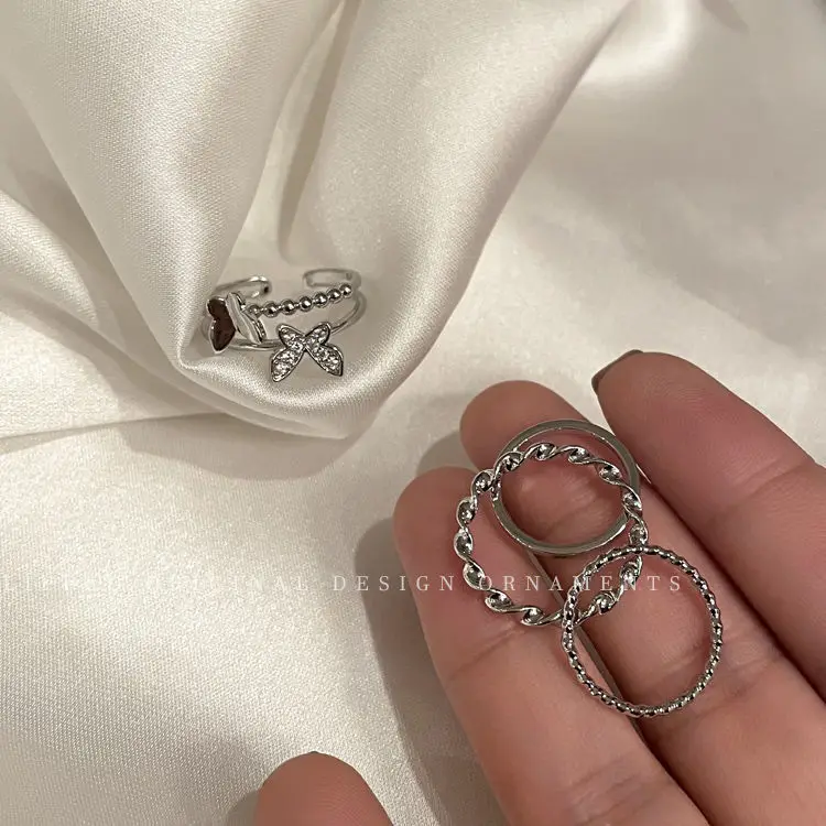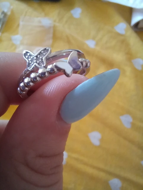 из 4 колец в наборе, регулируемое только одно (с бабочками). и бабочки на колечке отличаются от тех, что изображены на фото.