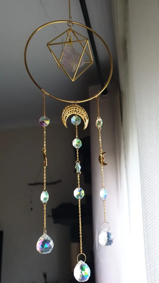Хрустальные колокольчики, звезда, луна, солнце, колокольчики, ветряные колокольчики, красочные бусины с покрытием, подвесные капли для улицы, помещения, сада, Декор, ремесло
