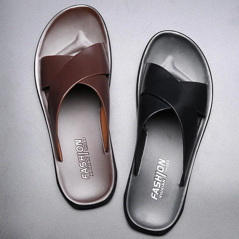 Кожаная обувь летние мужские шлепанцы, мужские тапочки, уличные пля...