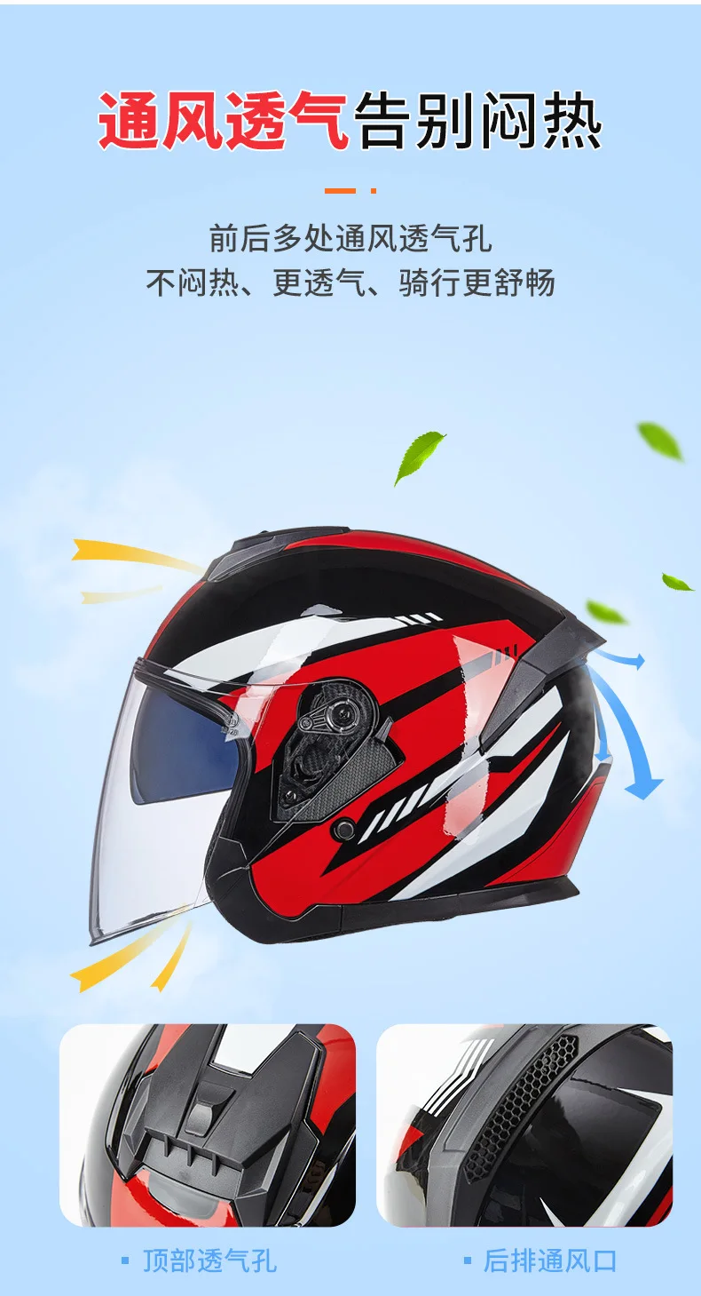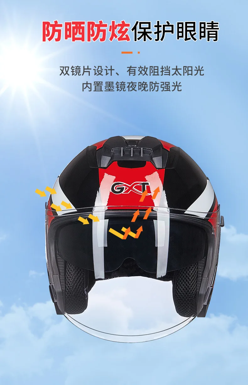 Автомобильный шлем на аккумуляторе Four Seasons GXT703, Солнцезащитный лобовое стекло, мотоциклетный летний двойной объектив, персонализированный легкий Половина шлема
