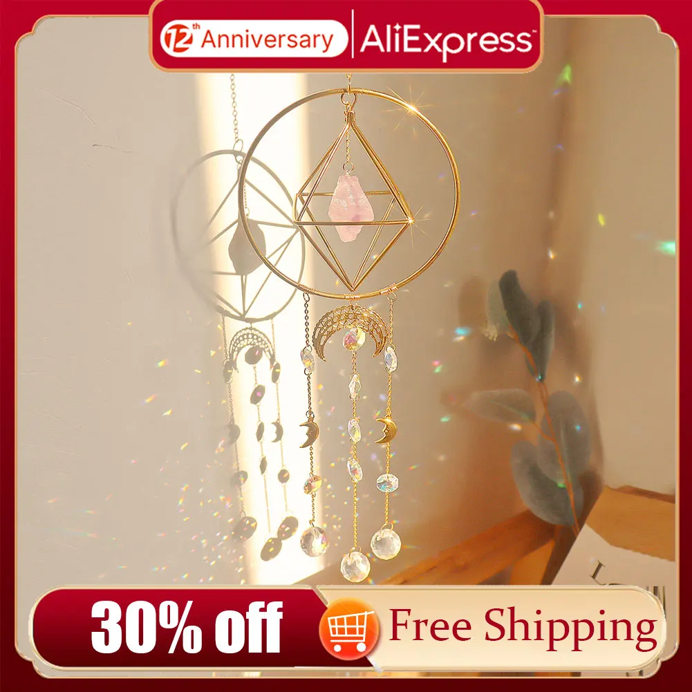 Хрустальные колокольчики ветра Луна Радуга солнце Сияющие кристаллы...