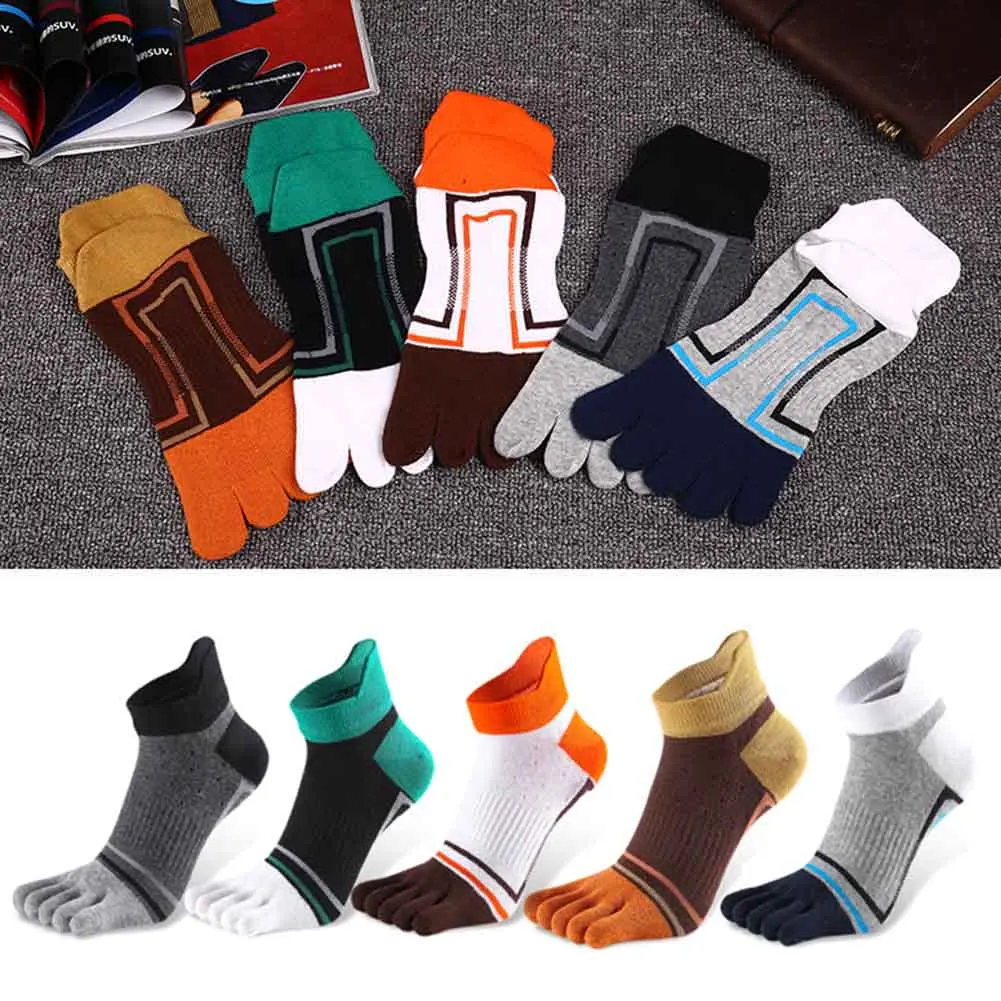 Носки мужские из чистого хлопка, спортивные дышащие короткие чулки с разделением на пять пальцев, до щиколотки, носки, 2 шт.
