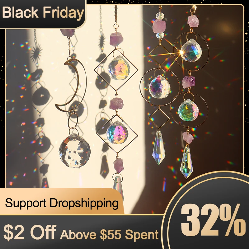 Хрустальные ветряные колокольчики, солнцезащитные подвесные бриллиантовые радужные колокольчики, садовые окна, свадебные занавески, люстра, домашний декор, колокольчики