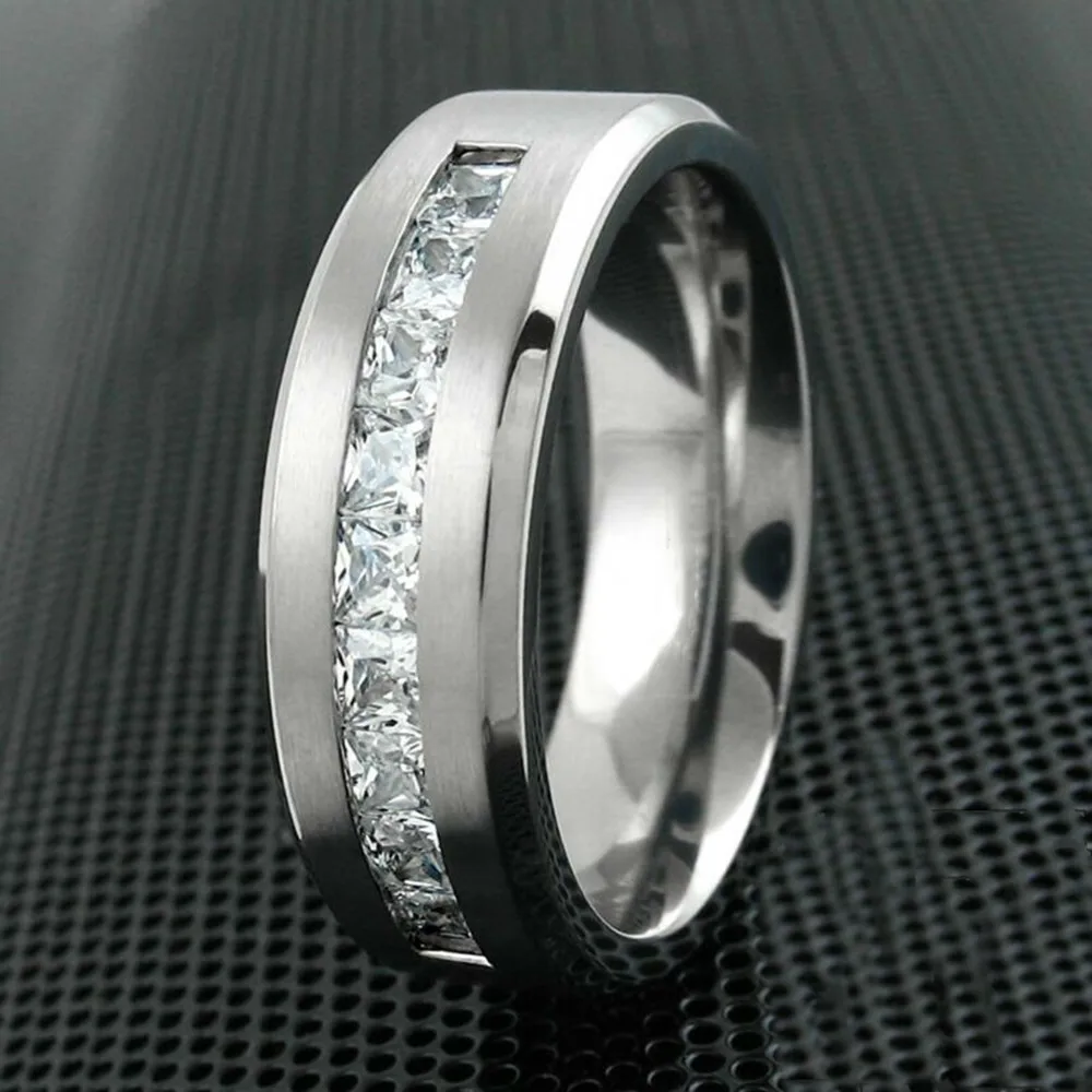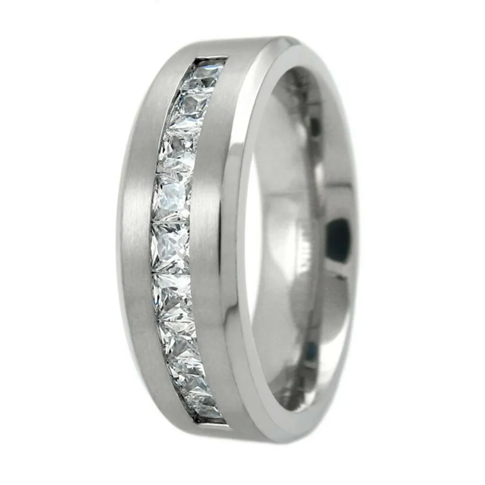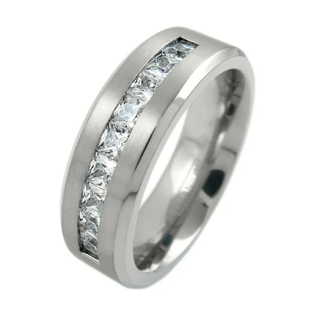 Обручальное кольцо, из нержавеющей стали, с Фианитовой поверхностью матовое кольцо