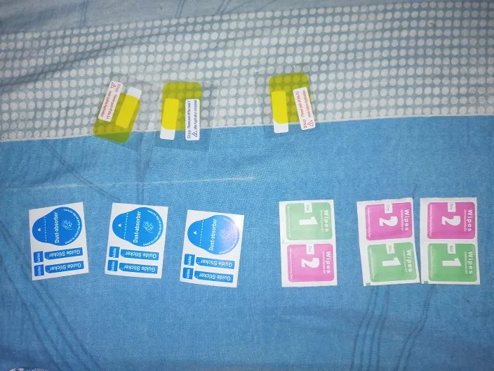 Пришли три протектора размера моих часов 3 салфетки 1, чтобы очистить перед размещением, а другой положить позже мокрым и сухим, а затем три наклейки, чтобы держать протектор, пока я наклеиваю его, но с бумага, которая приходит к вам, более чем достаточно