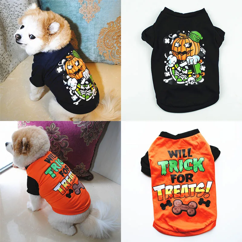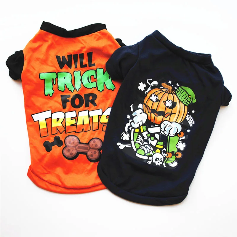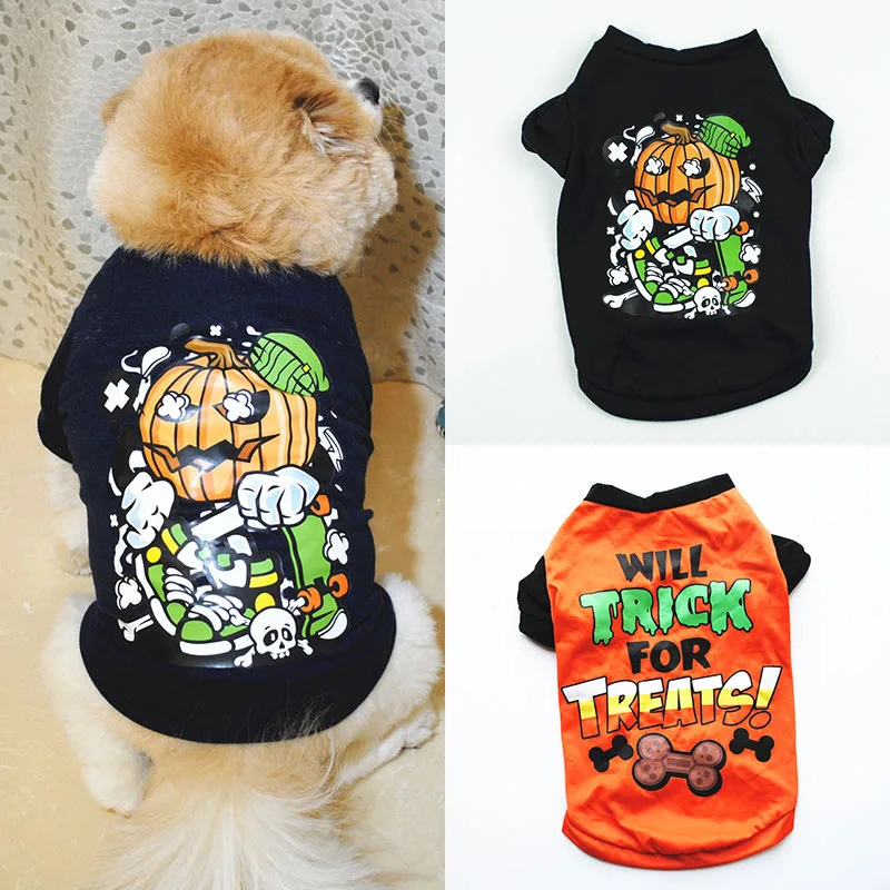 Жилет для домашних животных в стиле Хэллоуин, жилет с принтом алфавита, тыквы, кости, рубашка для собак, одежда для маленьких собак, рубашки для домашних животных с коротким рукавом, чихуахуа