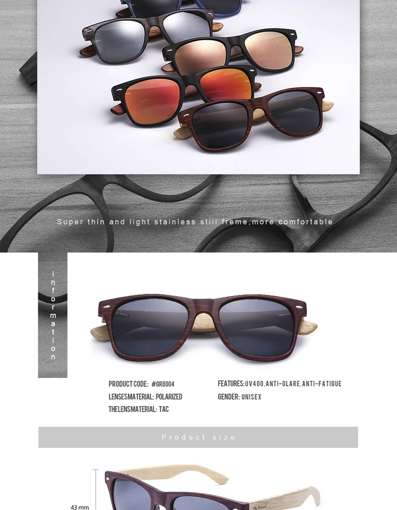 Солнцезащитные очки HU WOOD, мужские, деревянные солнцезащитные очки унисекс, модные женские солнцезащитные очки, поляризованные зеркальные очки HD, GR8004