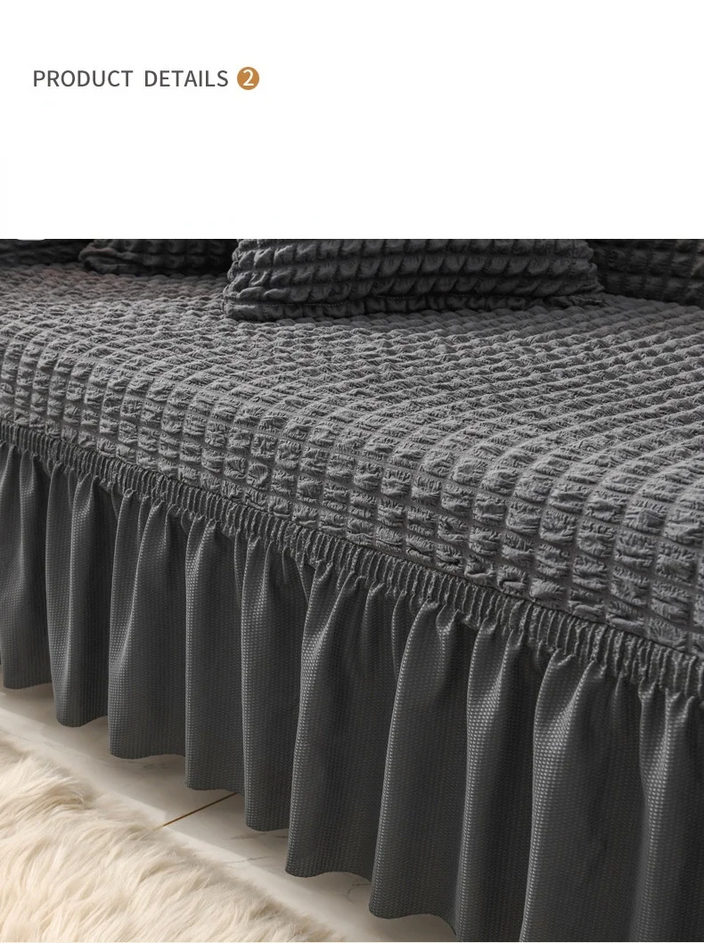 Чехол для дивана жаккардовый эластичный с юбкой, для гостиной