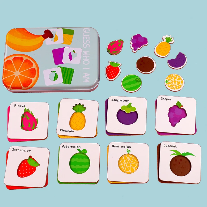 Деревянные игрушки-пазлы с железной коробкой, детские животные, фру...