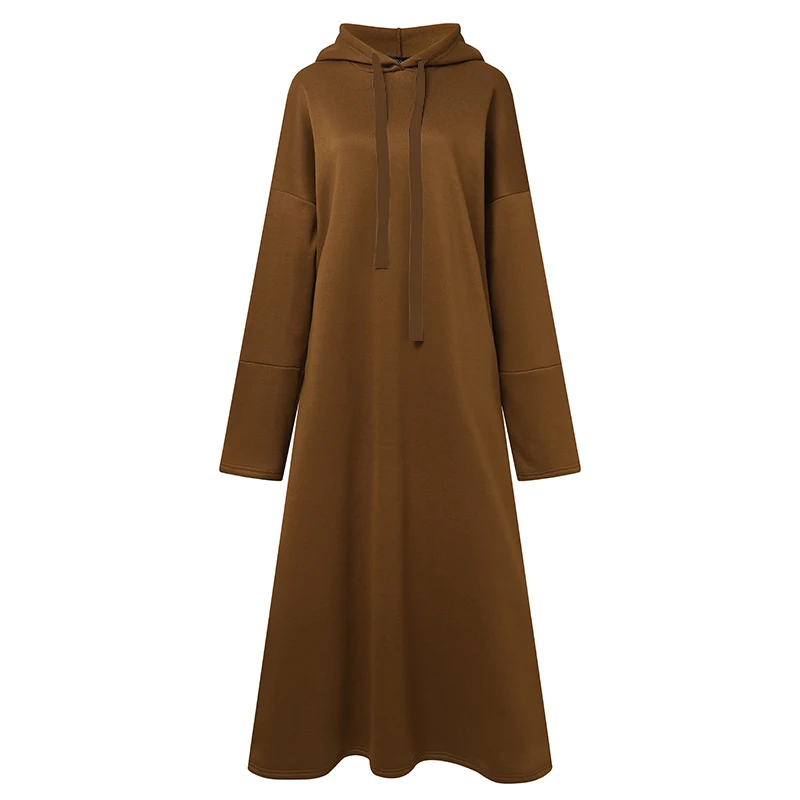 Платье-Толстовка женское осеннее с капюшоном и длинным рукавом