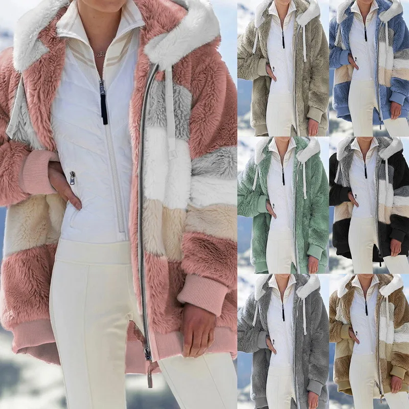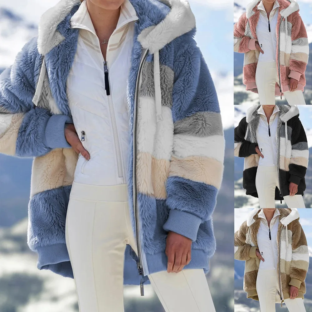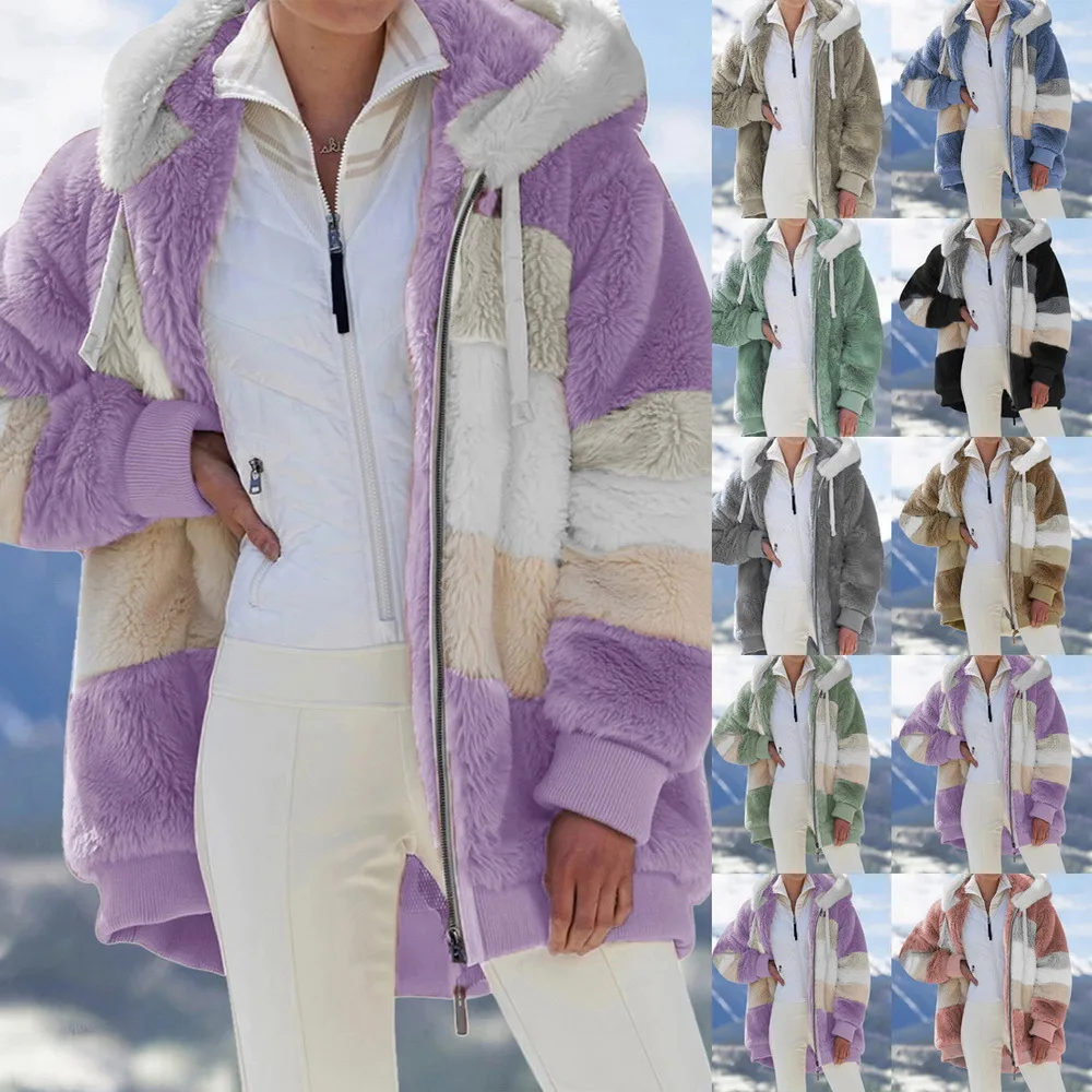 Зимняя женская куртка, модная плюшевая Лоскутная зимняя куртка с ка...