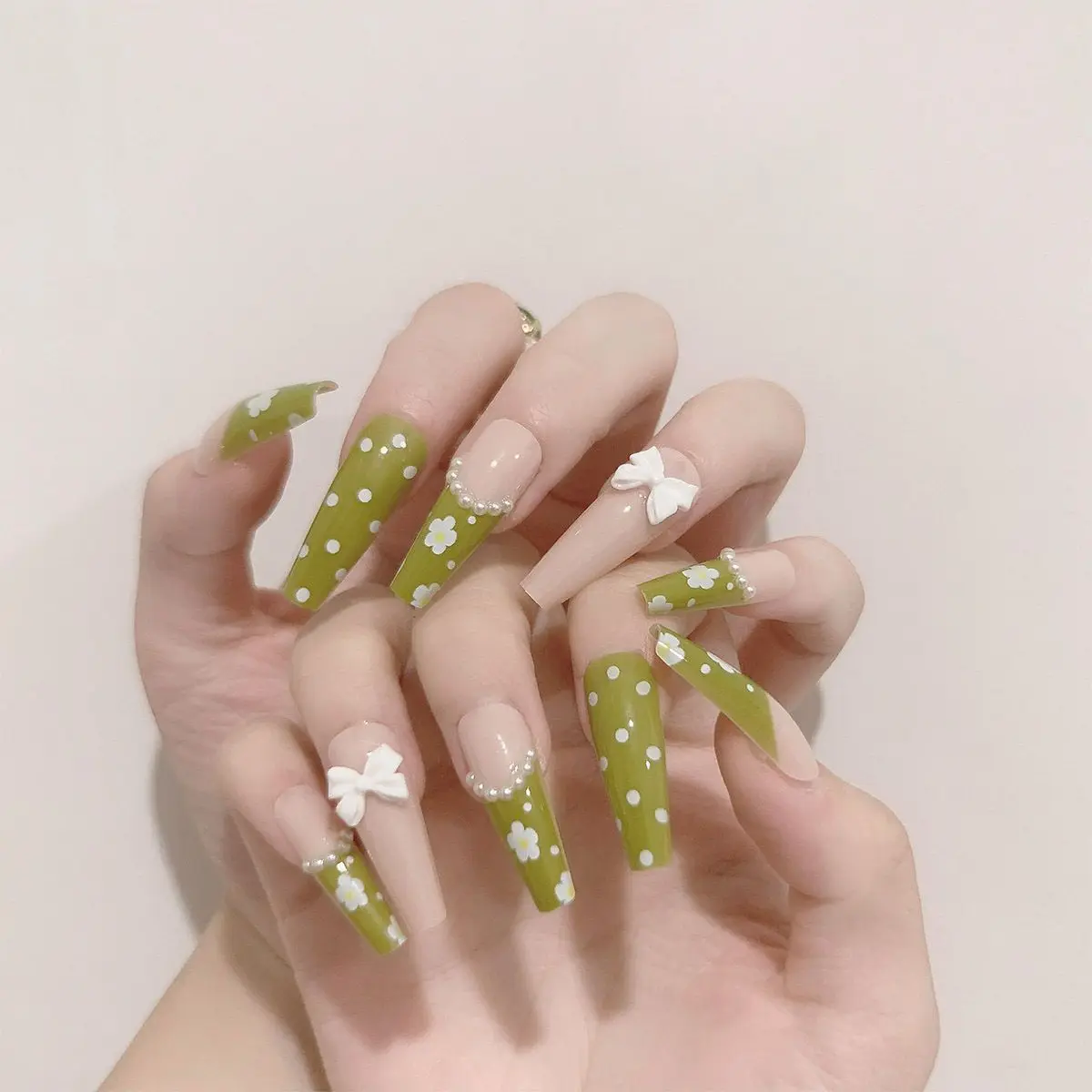 Гроб, искусственный ноготь с 3D бантом, украшенный, съемный длинный...