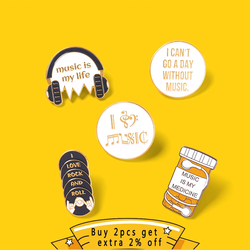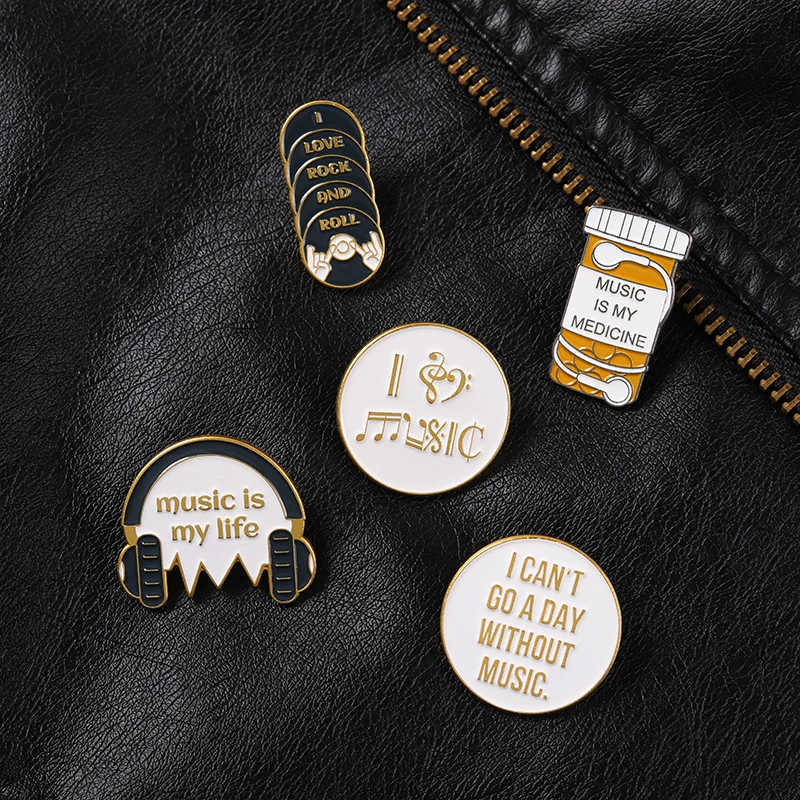 Эмалированные булавки Музыка-моя жизнь, гарнитура в стиле рок-н-рол...