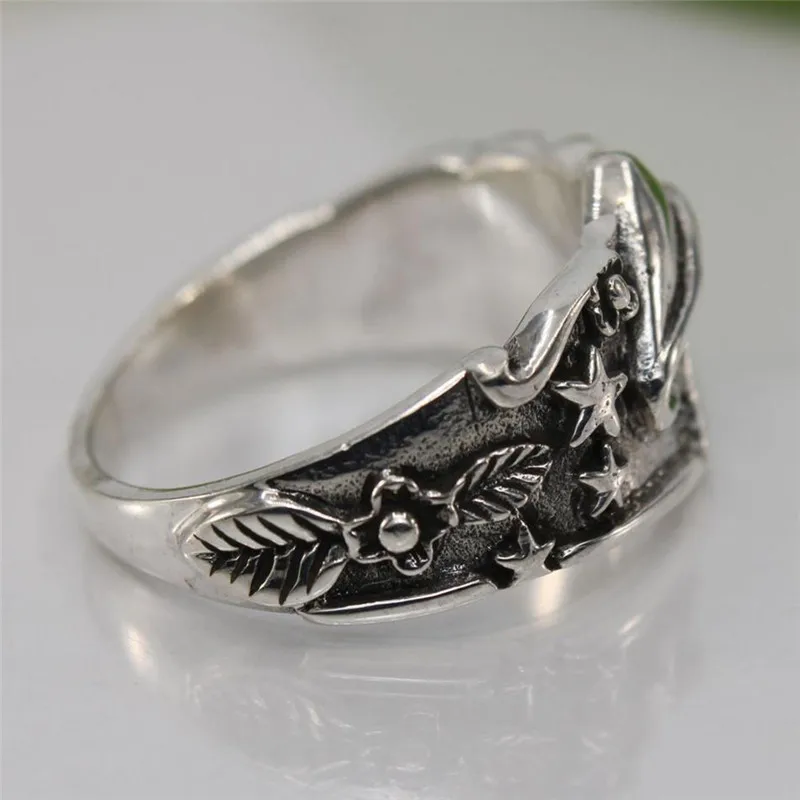 Ретро гриб звезда листьев кольцо панк цвет: старое серебро кольцо Д...