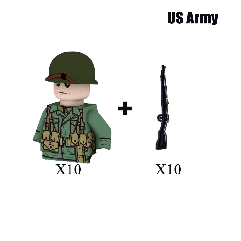 Детские игрушки 10 шт.лот WW2, военные фигурки из США, строительные блоки с 4-сторонней печатью, кирпичи для солдат, игрушки для детей, подарки на день рождения