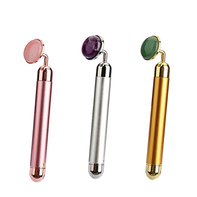 Электрический вибрирующий массажер Из Натурального Розового Кварца и нефрита для подтяжки лица, тонкий Нефритовый камень, массажный инструмент для ухода за кожей
