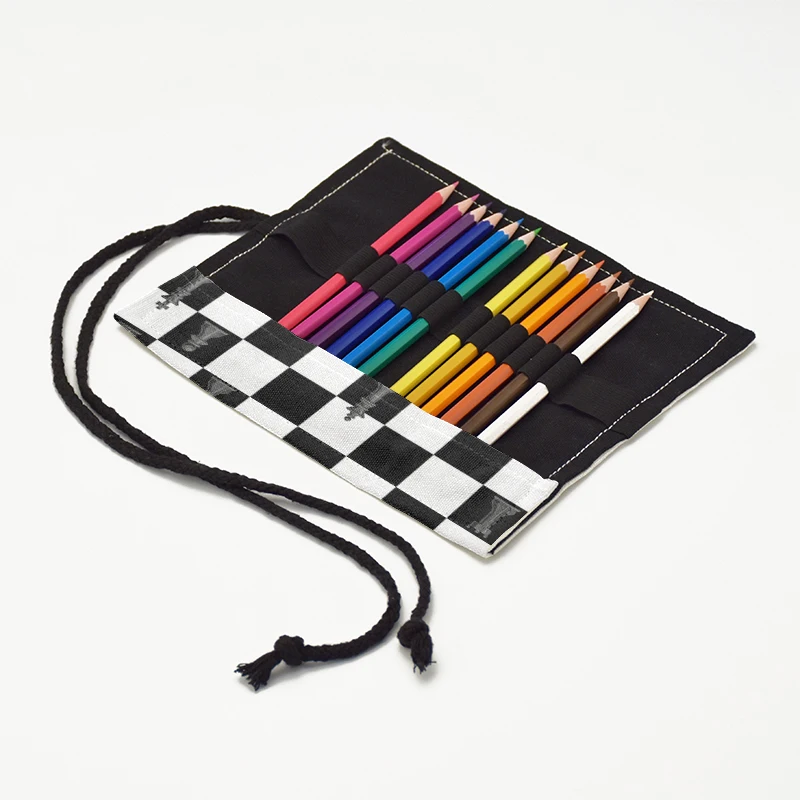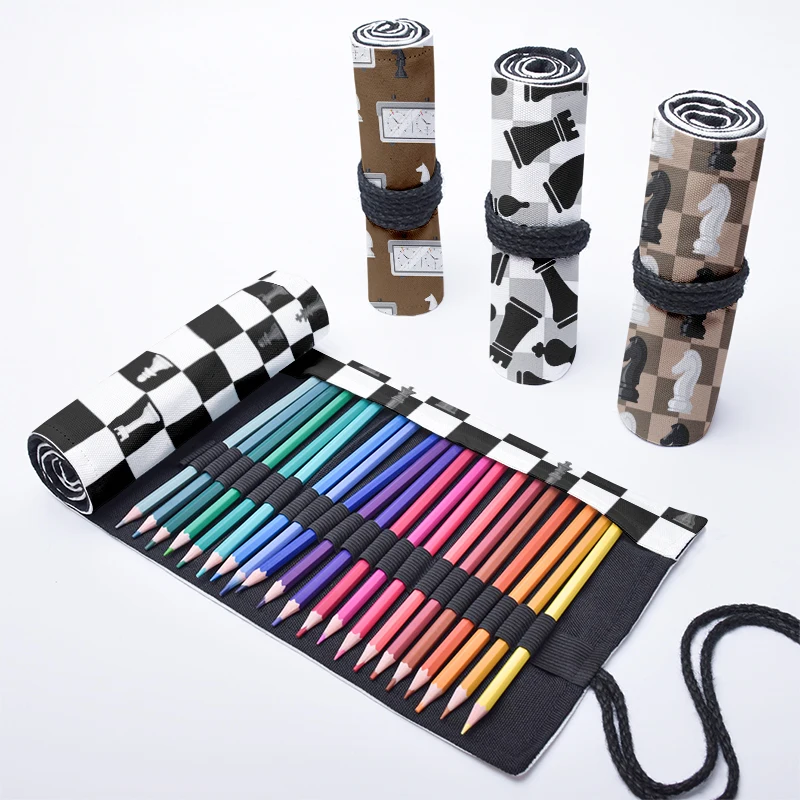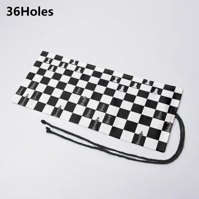 Чехол-книжка унисекс для карандашей, с принтом шахмат, забавный, Повседневный, Холщовый, ролик ручка, 1224364872 отверстий, сумка для хранения рисунков в стиле Харадзюку