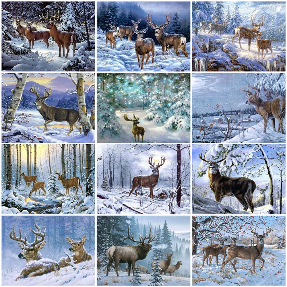 HUACAN картина по номеру олень животные наборы для взрослых ручная краска ed DIY Краска по номеру Зимний снег на холсте украшение дома