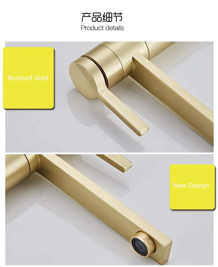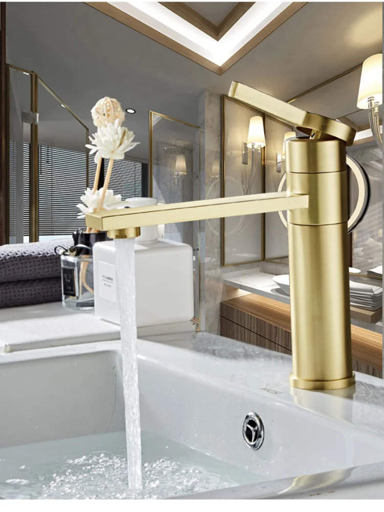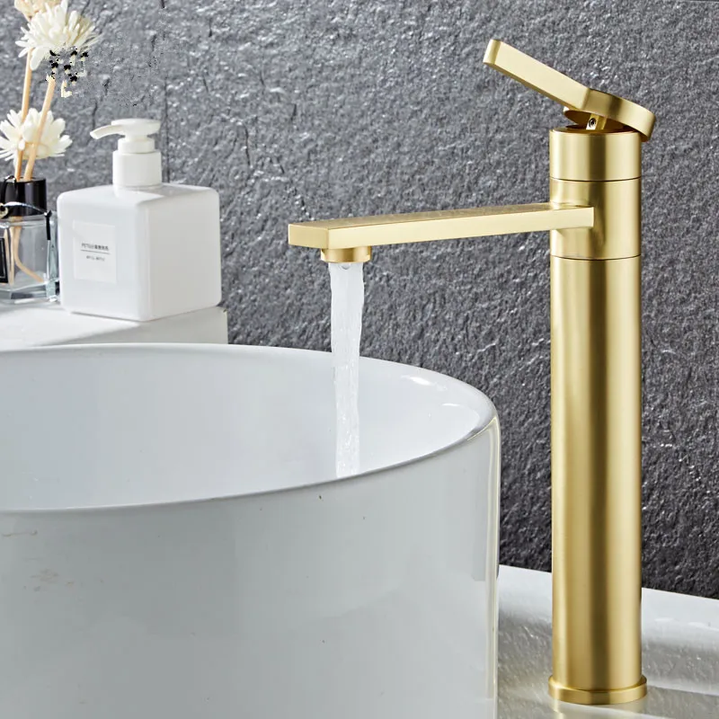 Смеситель для ванной из твердой латуни, кран для раковины в ванную комнату, для холодной и горячей воды, матовый золотой кран с одной ручкой для крепления на раковину