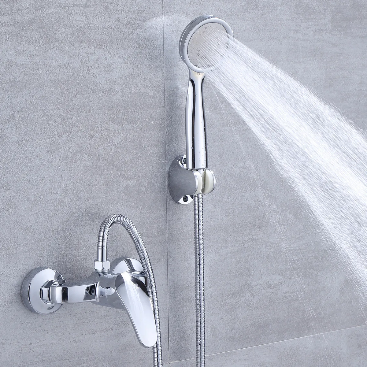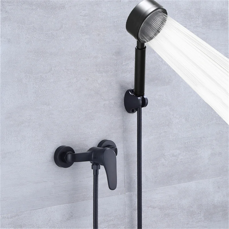 Смеситель для ванной комнаты, латунный Черный Матовый кран для горячей и холодной воды, настенный набор с насадкой для душа высокого давления из АБС