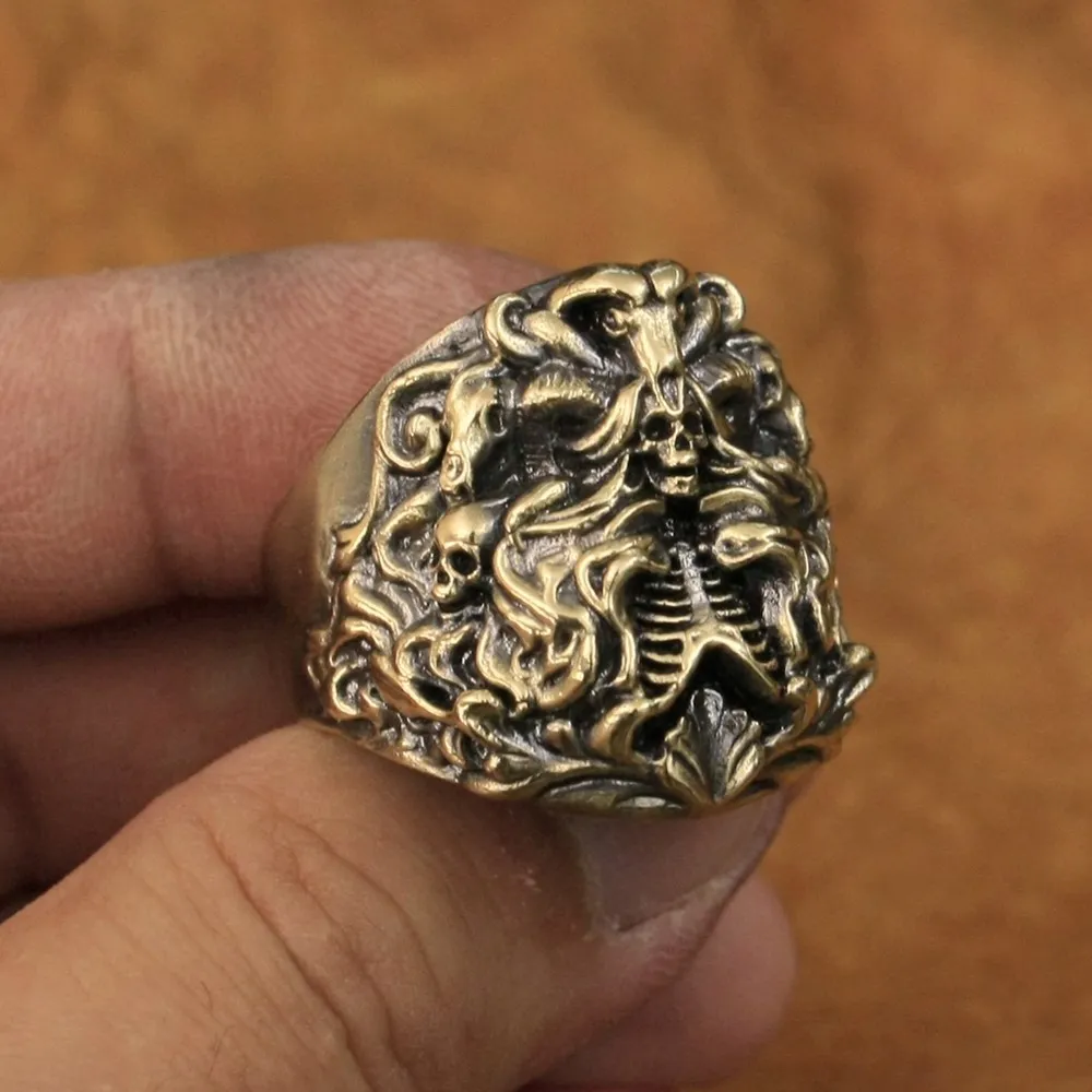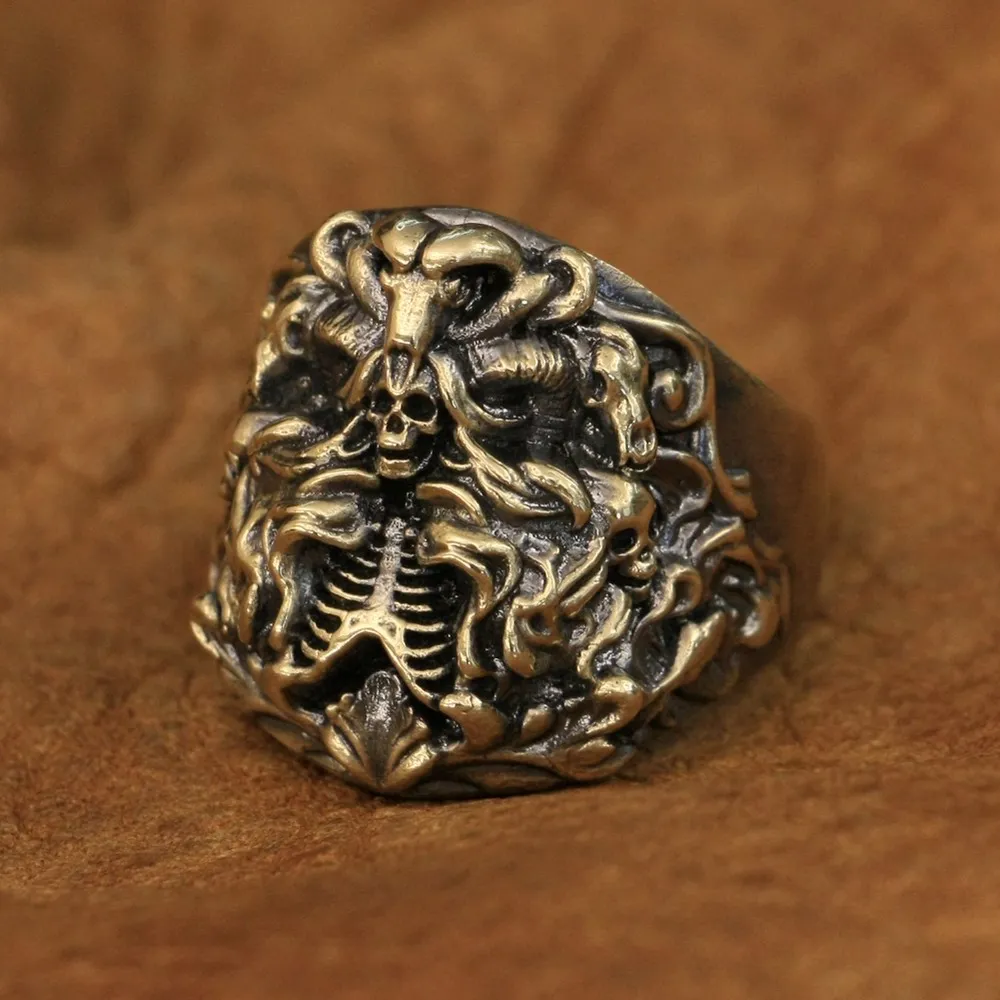 LINSION детали Латунное ничто мир Призрак Кольцо мужское панк кольц...